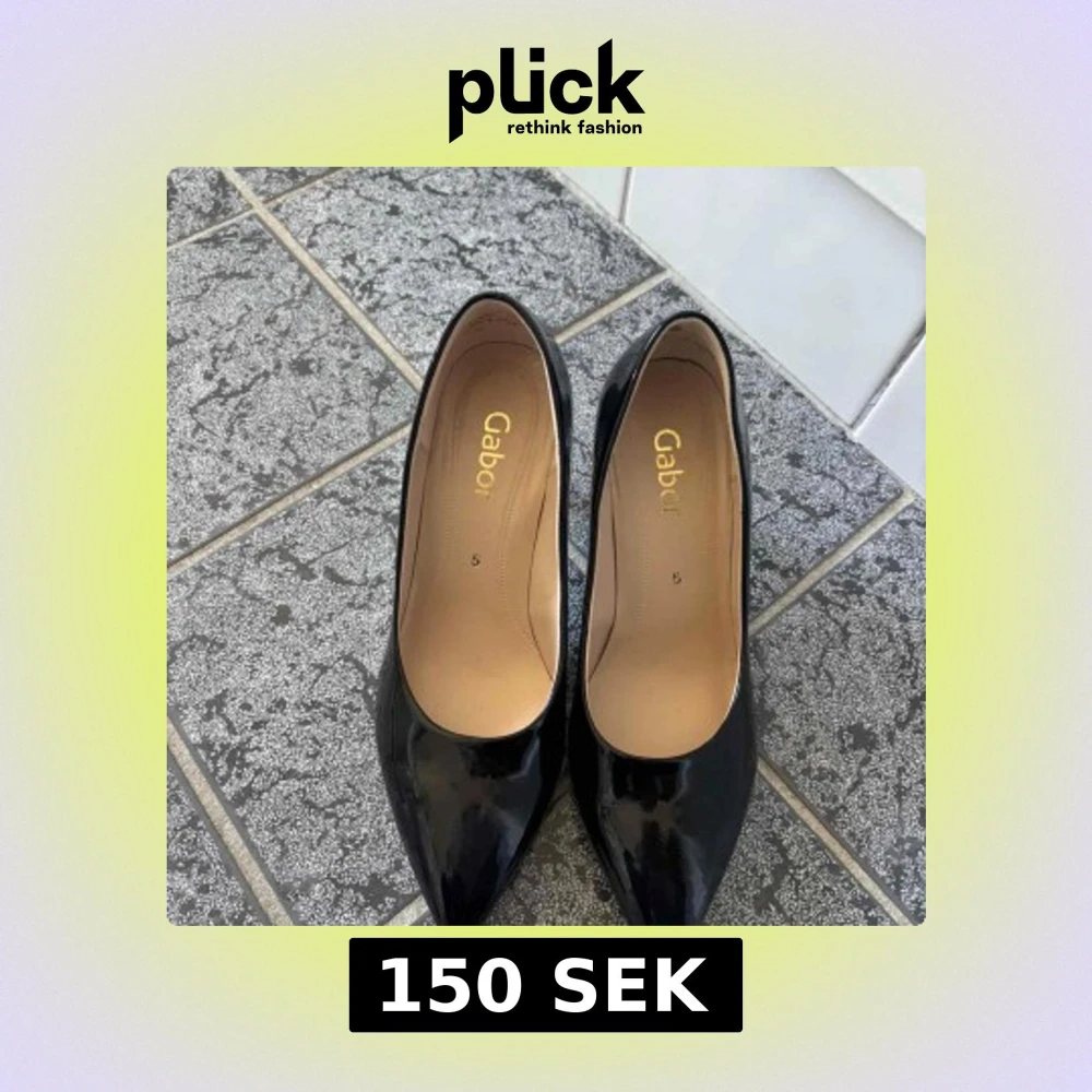 Eleganta svarta pumps från Gabor i lackat material med spetsig tå och klack. Perfekta för en stilren look. Upplev liten i storlek. Använd 2-3 gånger.