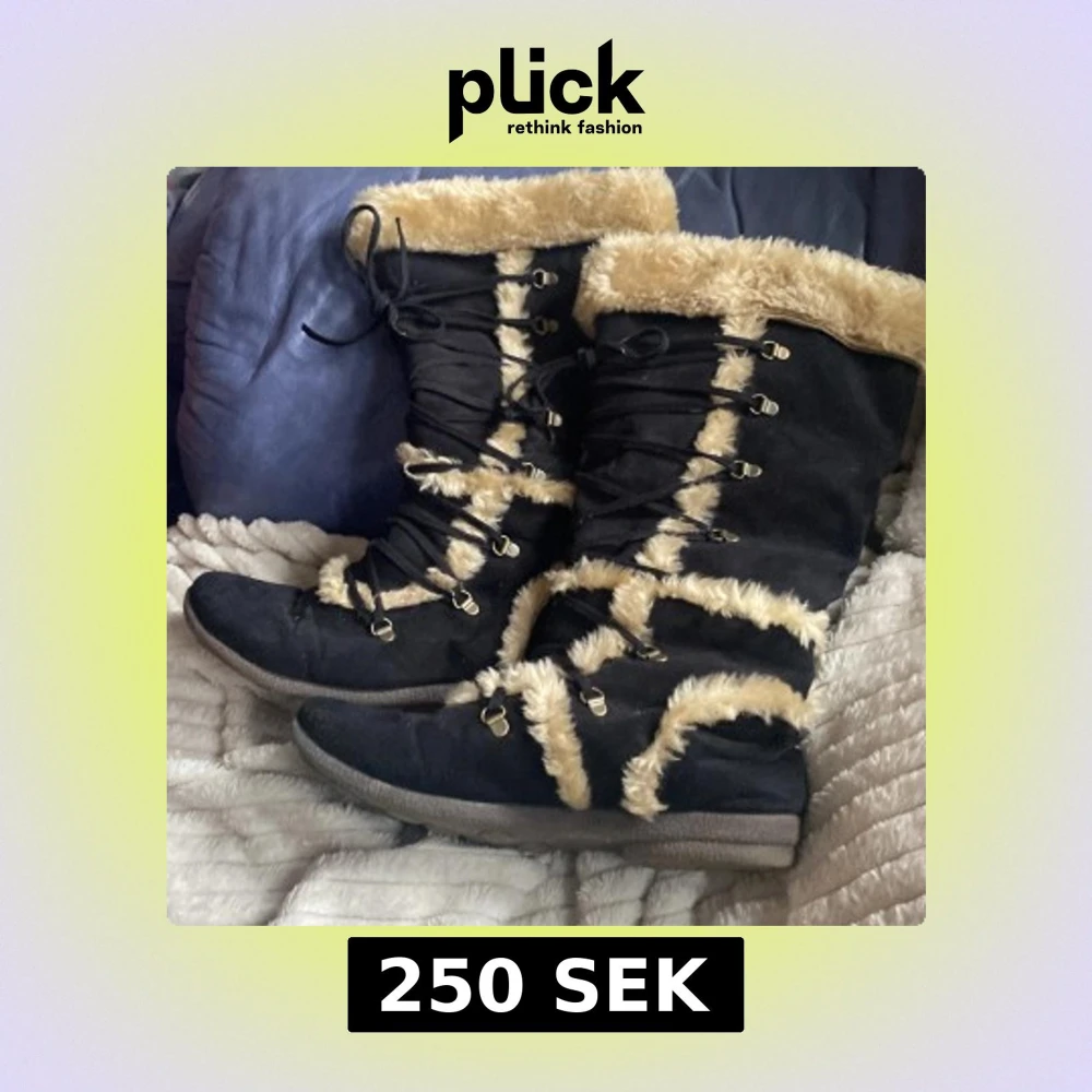 Snygga svarta stövlar med beige fuskpälsdetaljer och snörning. Perfekta för kalla vinterdagar med en robust sula för bra grepp. De har en mysig och varm insida som håller fötterna varma.