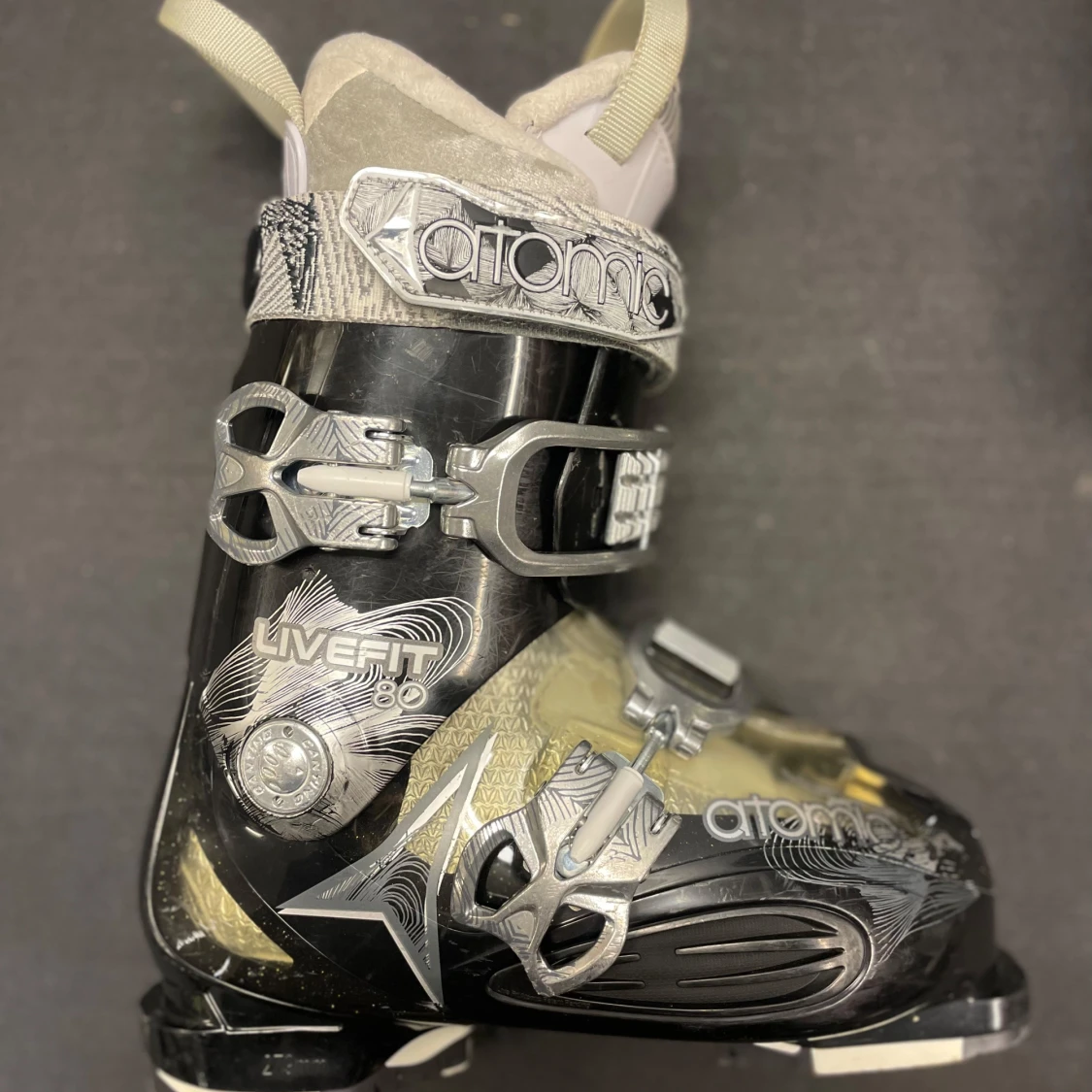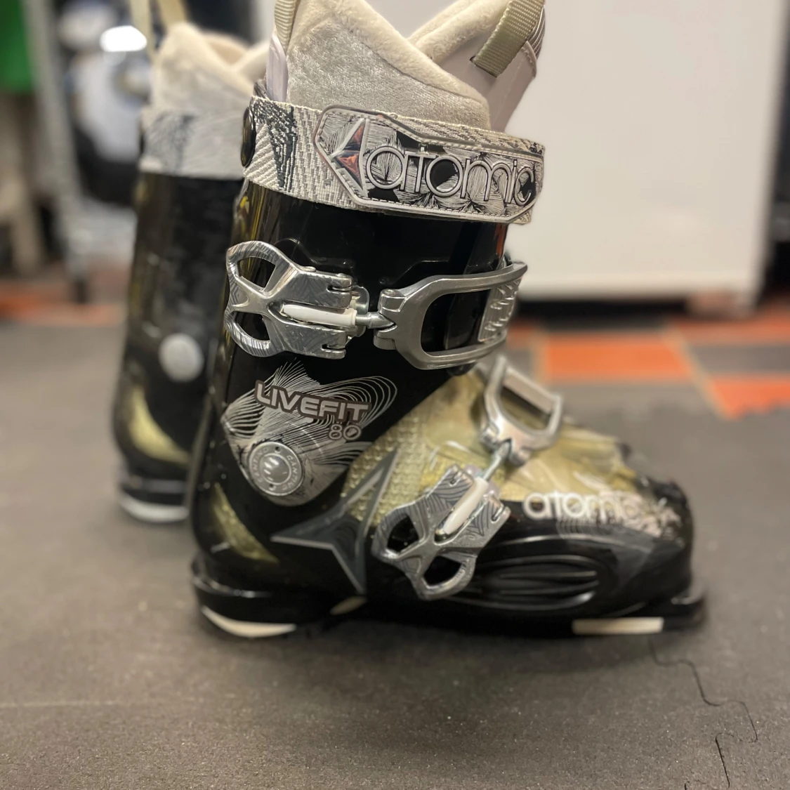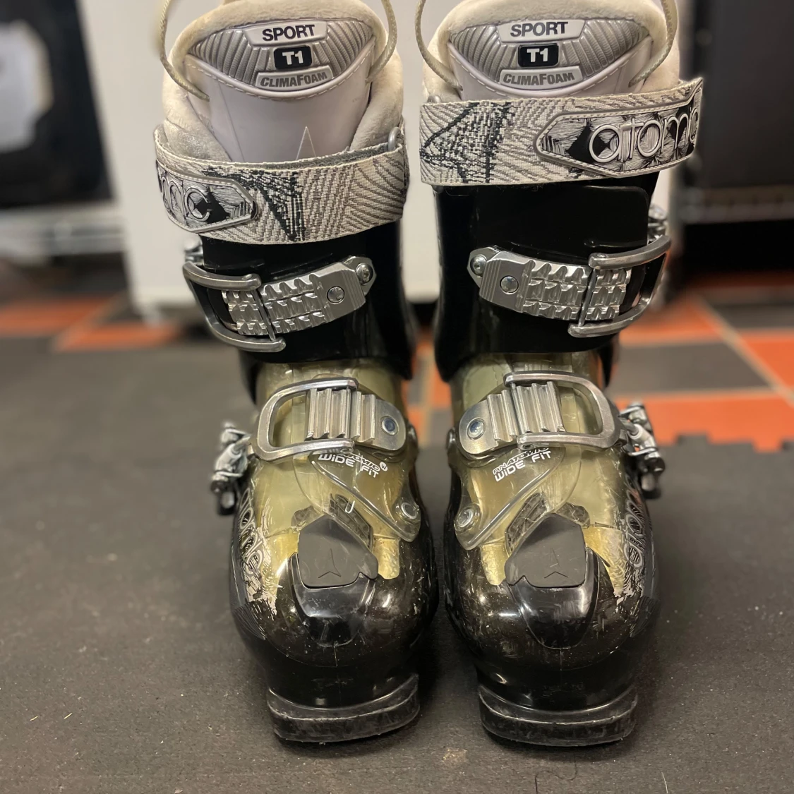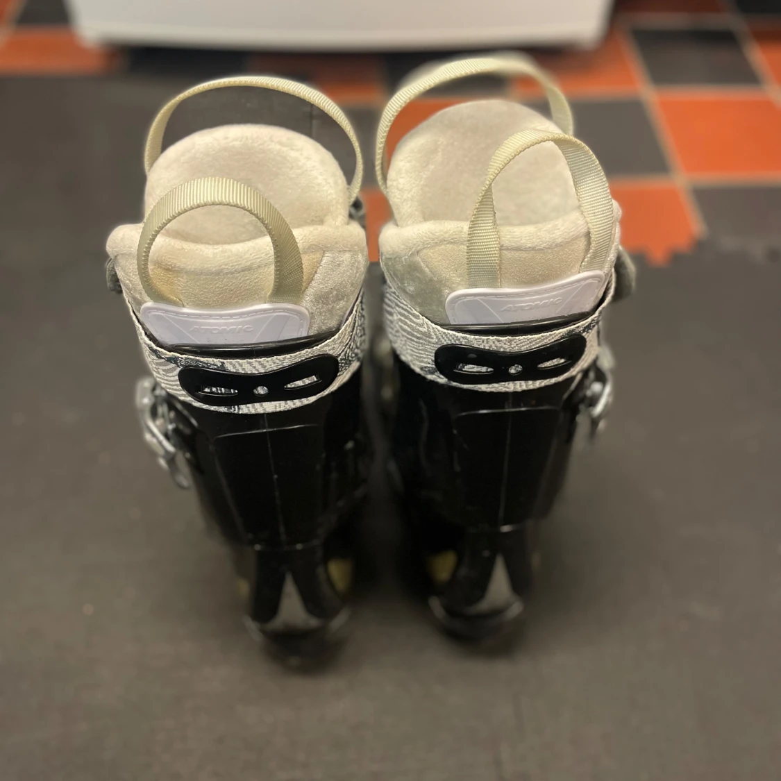Ett par snygga pjäxor och väldigt bekväma , mjukt foder, extra rem över spännena och bra ”handtag” för att få på dem på foten. Storlek 279mm ca storlek 38 Sparsamt använda en vecka per år.