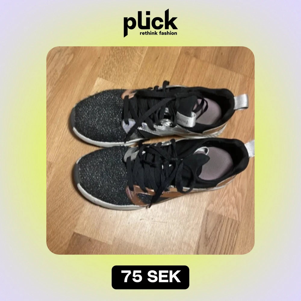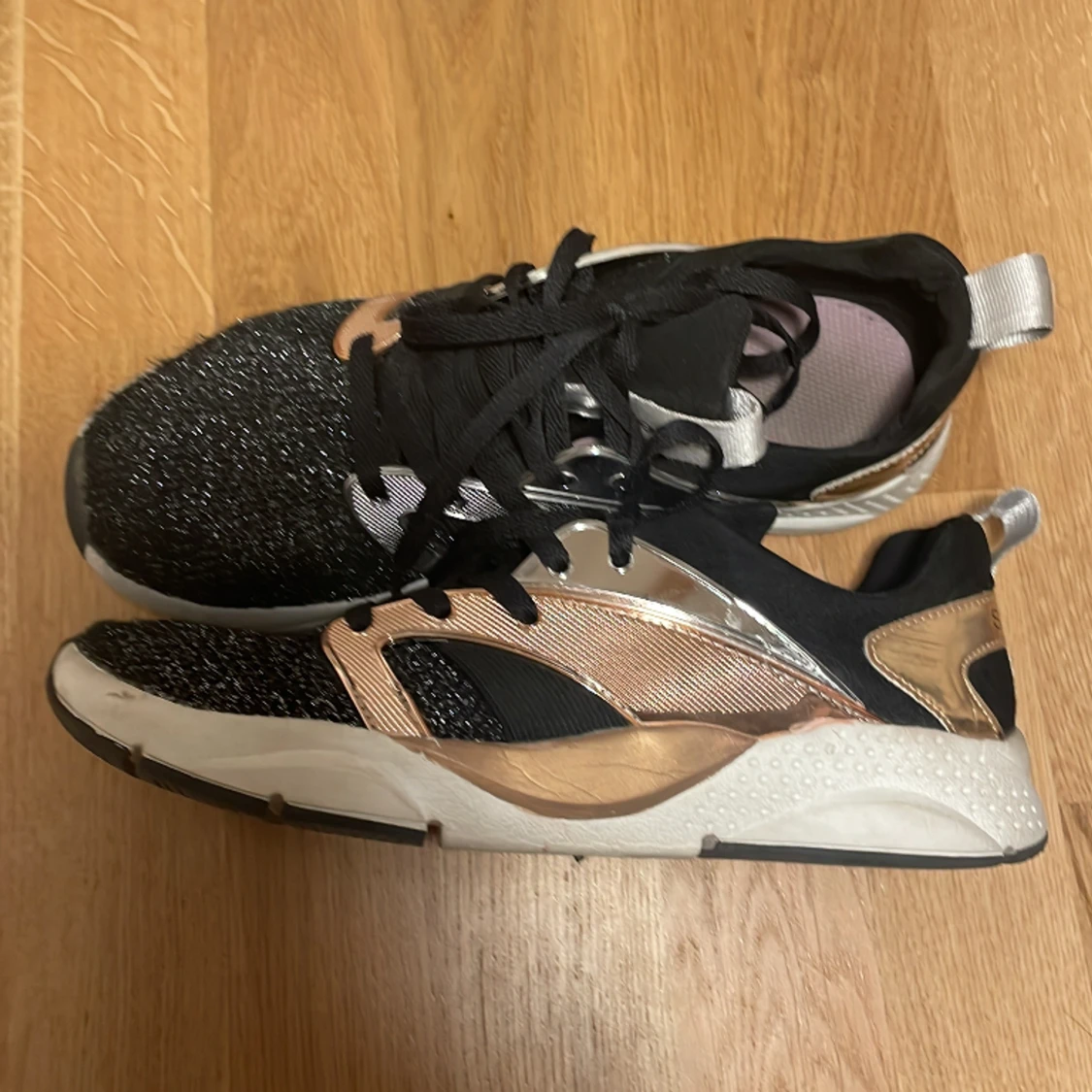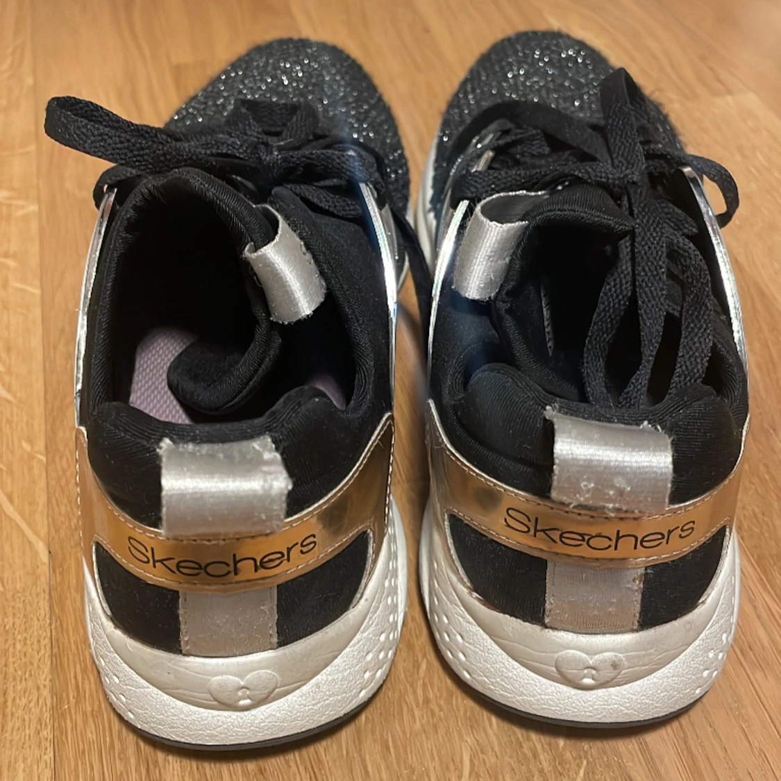 Ett par svarta sketchers med roseguld och silver detalj, använt skick. Har ändå mycket kvar att ge.