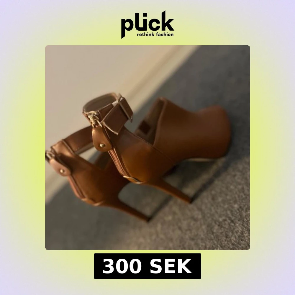 Snygga bruna klackskor i skinn med öppen tå och justerbart spänne runt ankeln. Perfekta för en stilren look.