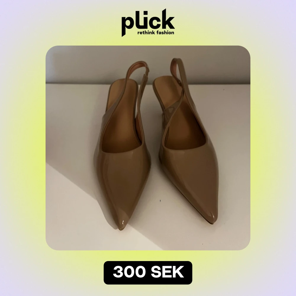 Säljer ett par oanvända eleganta beige pumps med spetsig tå och klack. Perfekta för både fest och vardag. De har en stilren design med en smidig rem runt hälen för extra komfort. Passar till många olika outfits och tillfällen!