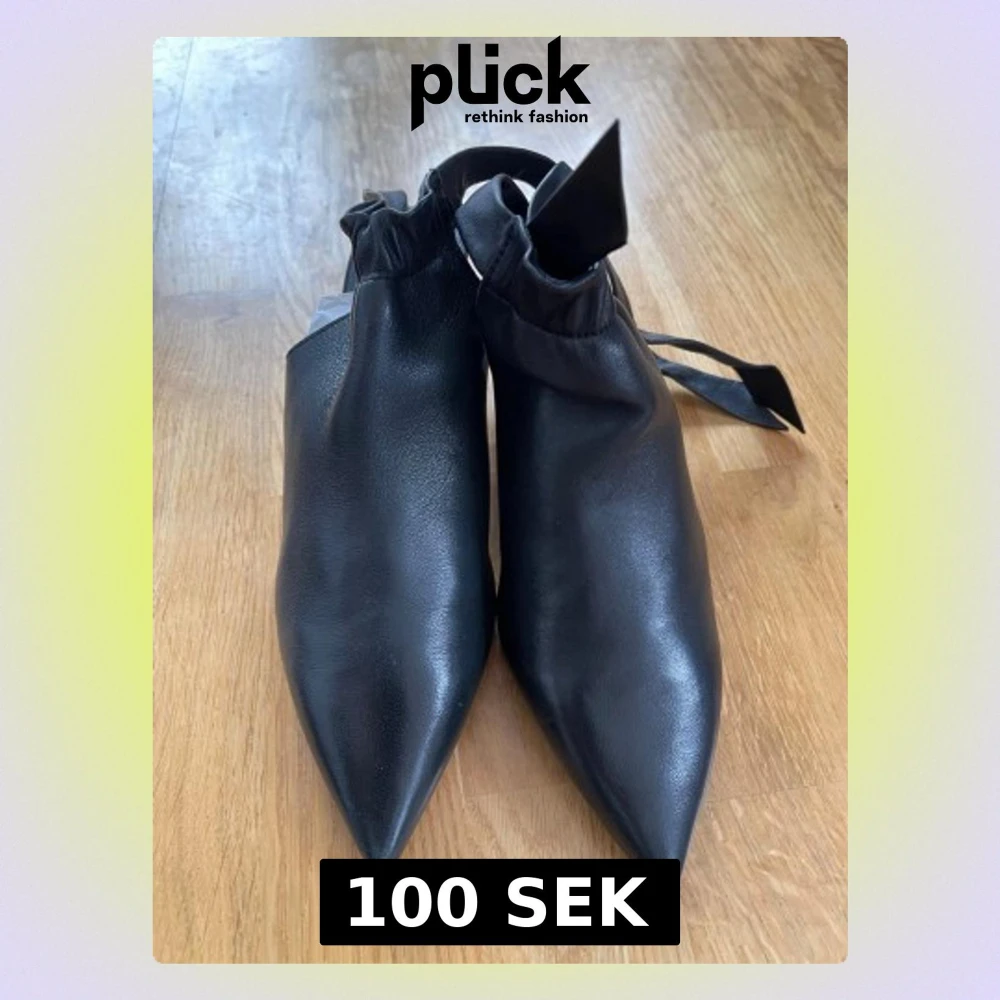 Säljer ett par svarta stövletter från Wera Stockholm i äkta skinn. Skorna har spetsig tå, låg klack och en snygg knytning runt ankeln. Perfekta för dig som vill ha en stilren och trendig look med edge.