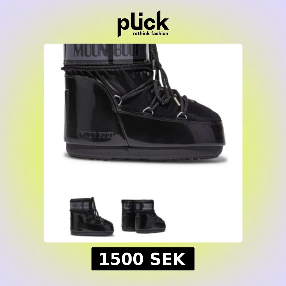Snygga och trendiga svarta Moon Boots med glansig yta och snörning. Perfekta för vinterns kalla dagar. De har en robust sula och är designade för att hålla fötterna varma och torra, storlek 39-41💕