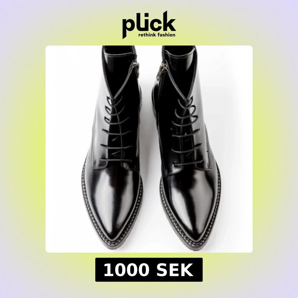 Svarta spetsiga snörade boots i skinn