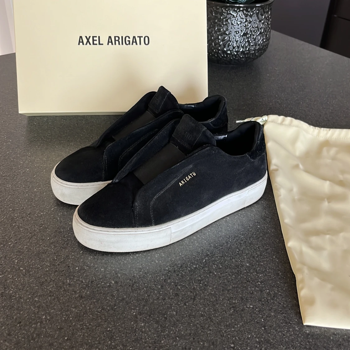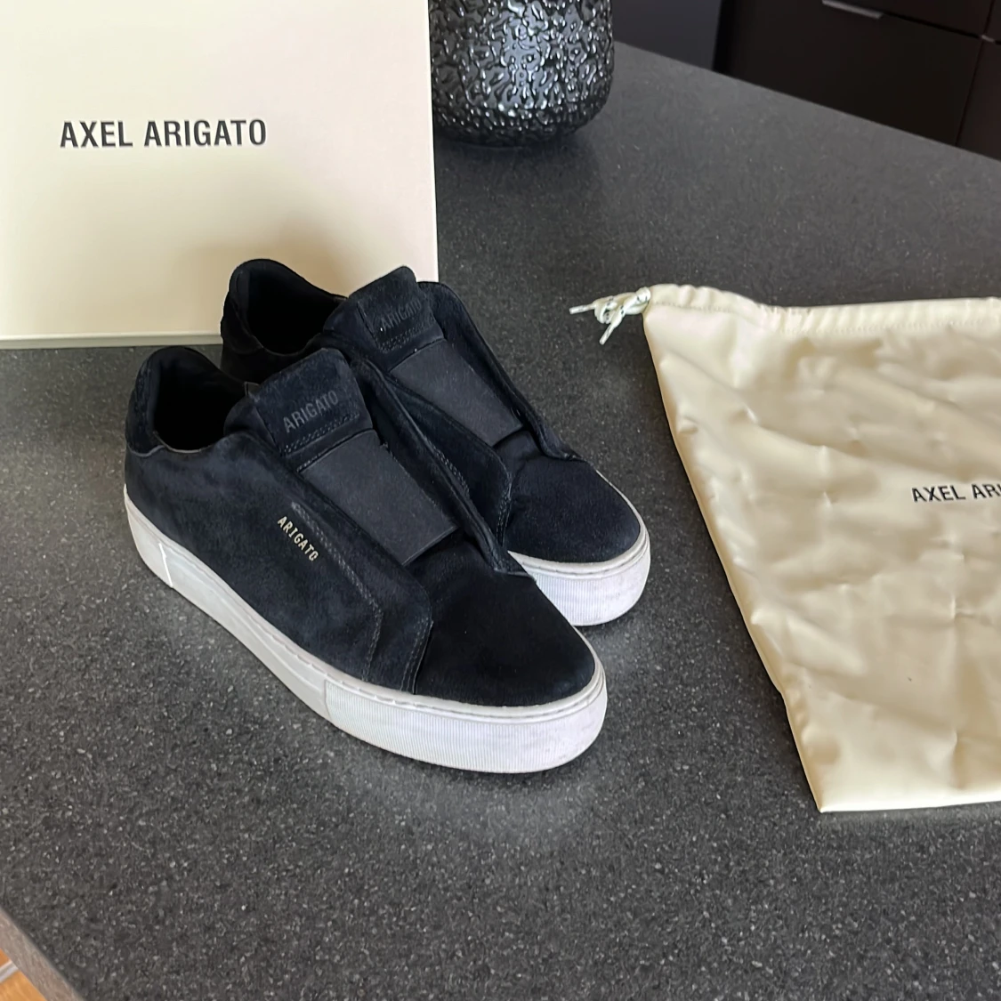 Hej, säljer nu mina Axel Arigato skor. Storlek 39 och de är i ett fint skick. Inge större skador på dem. Man får med box och duchbag. Kvitto finns inte för köpte den online. Köpte dem för 2550kr. Har ni några frågor hör av er. Mvh Zack