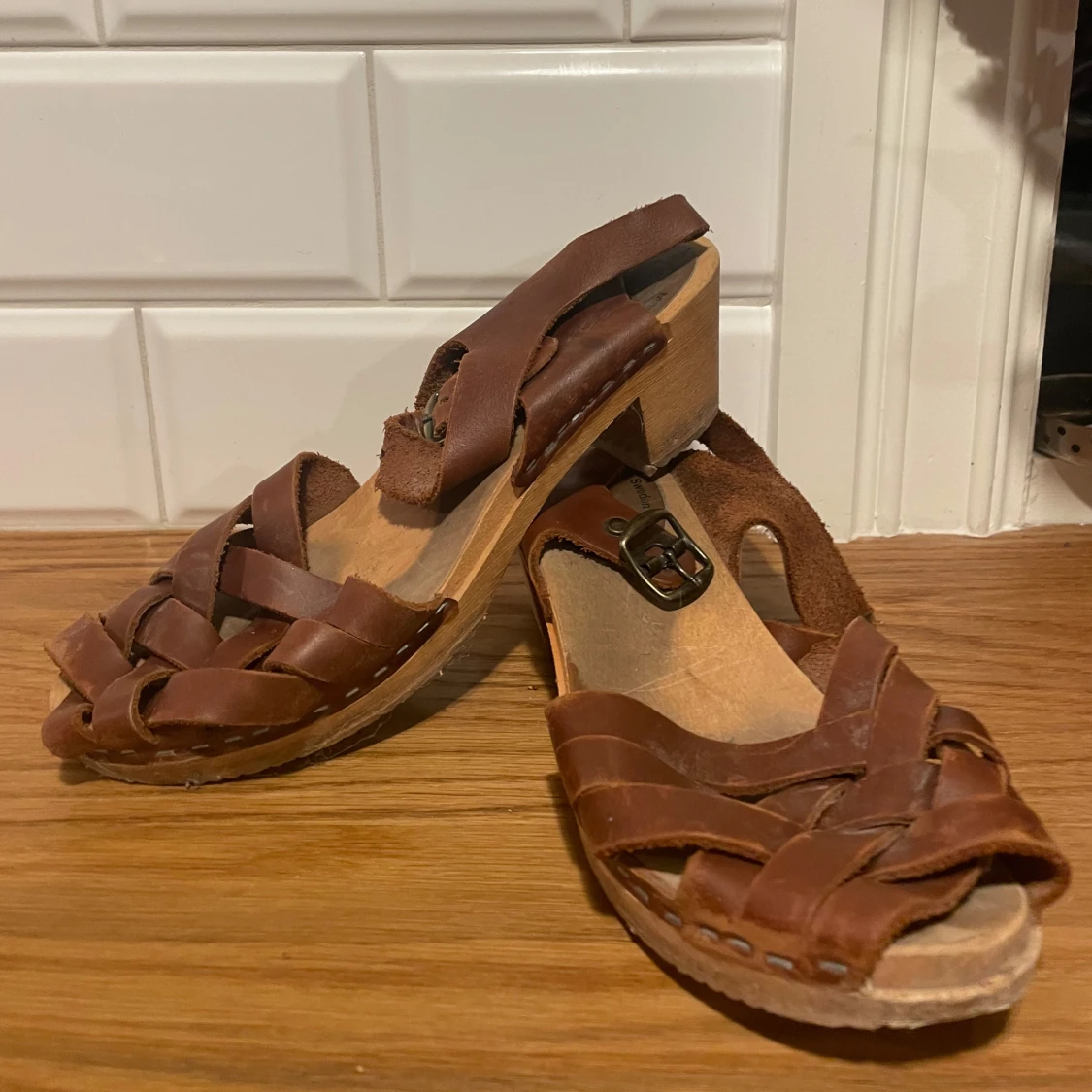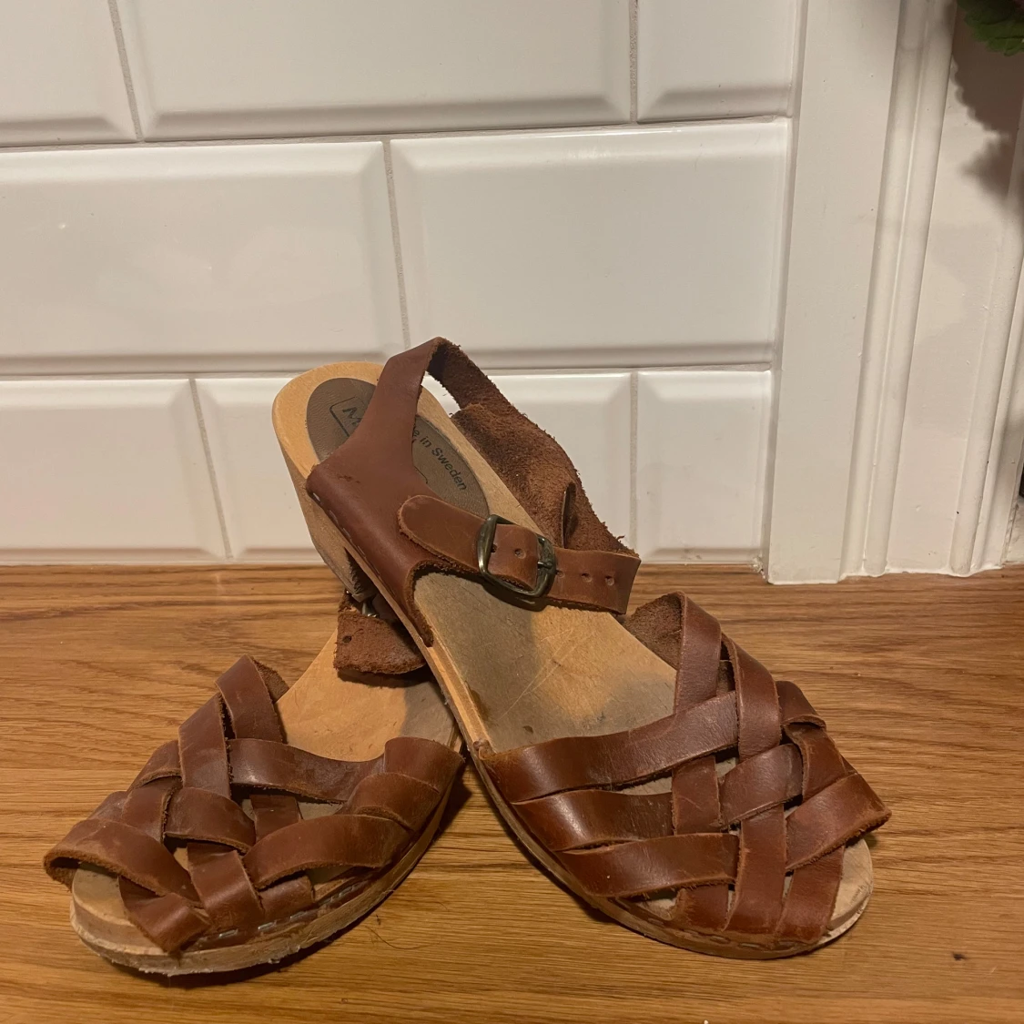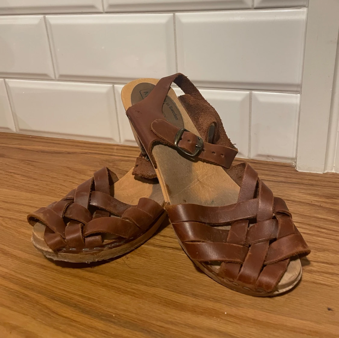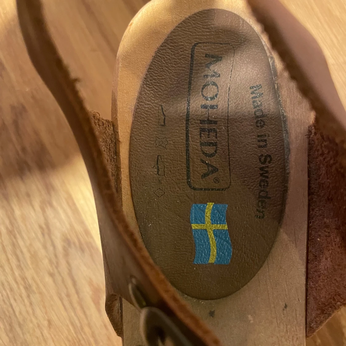 Snygga bruna sandaler från Moheda i klassisk svensk stil. Skorna har flätade remmar i skinn, öppen tå och justerbart spänne vid ankeln. Sulan är i trä-look och ger en naturlig vibe. Perfekta för varma dagar och enkel att matcha med sommarens outfits.