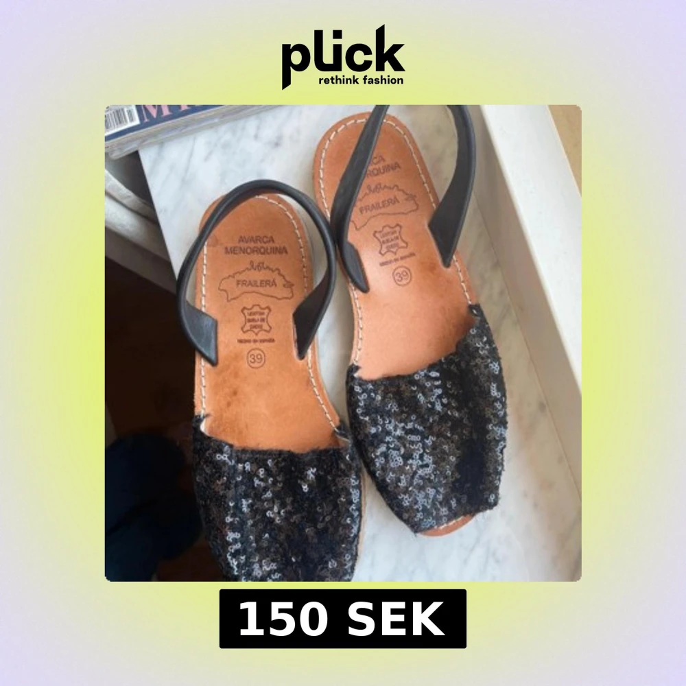 Så snygga sandaler från Frailera i svart skinn med glittriga paljetter framtill. Saknar ursprunglig kartong🖤