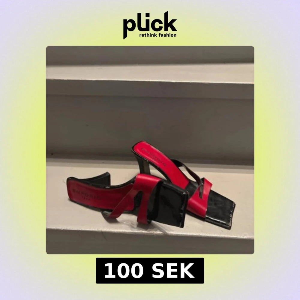 Unika klackskor från Emporio med cool design i svart och rött. Tyvärr passar dom inte längre och dags att byta ägare🙏🏼💋Jag har använt dom skonsamt.