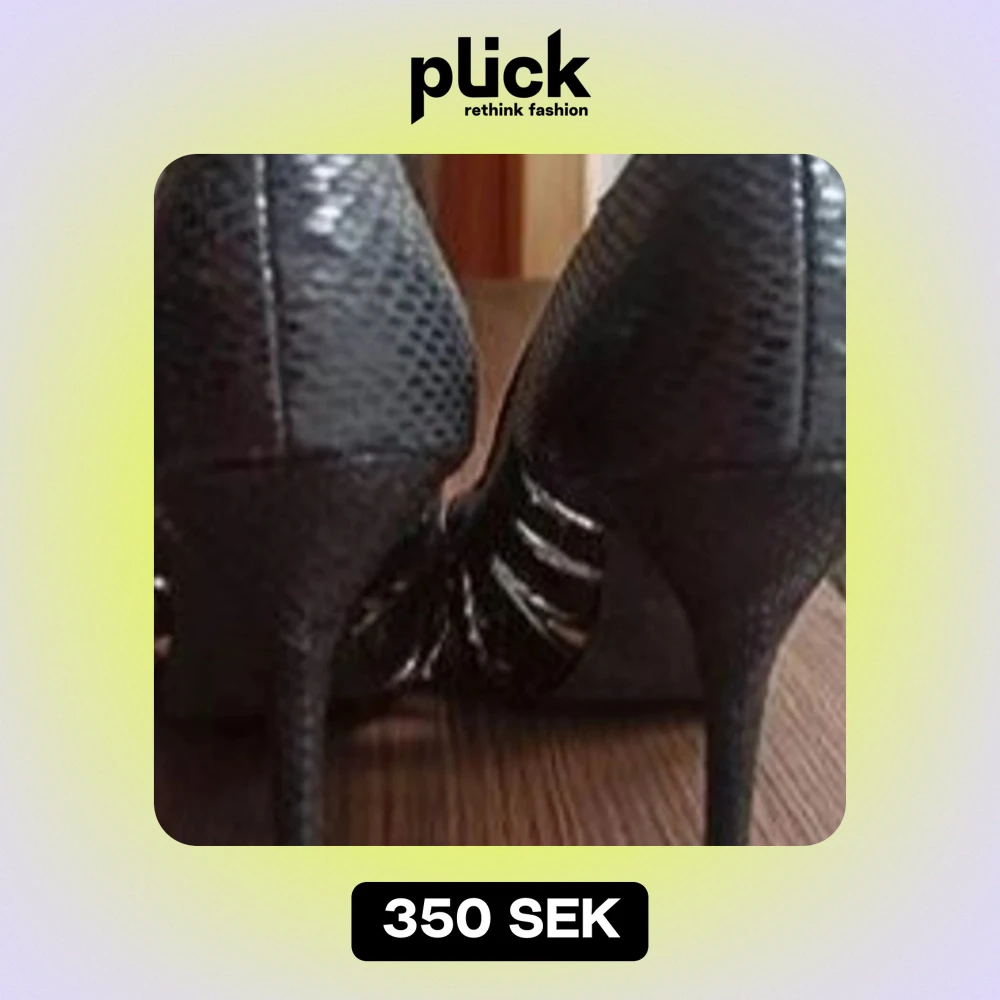 Snygga svarta pumps med ormskinnsmönster och öppen tå från Bianco. Perfekta för en utekväll eller fest. De har en elegant klack och ger en stilren look. Passar bra till både klänning och byxor.