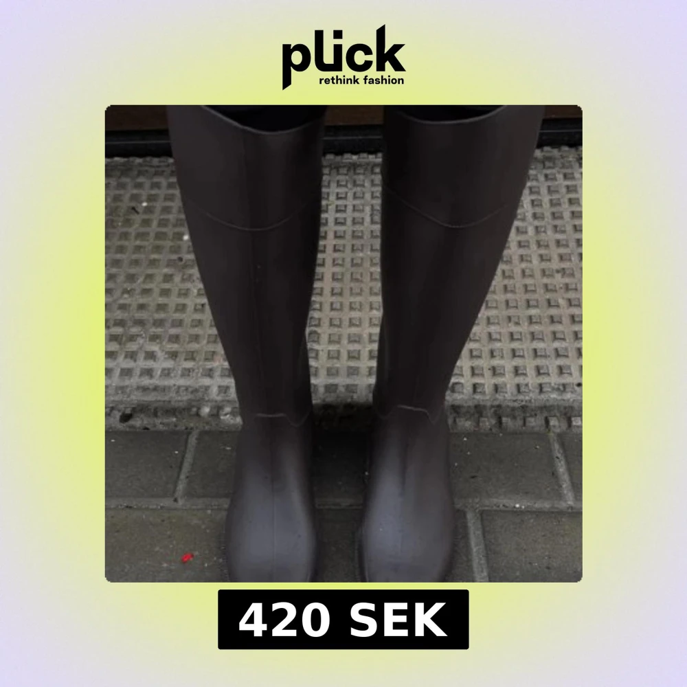 Snygga, höga bruna stövlar med stilren design. De är tillverkade i syntetmaterial och har en klassisk, rund tå och platt sula. Perfekta för att lyfta din outfit under höst och vinter. Helt oanvända