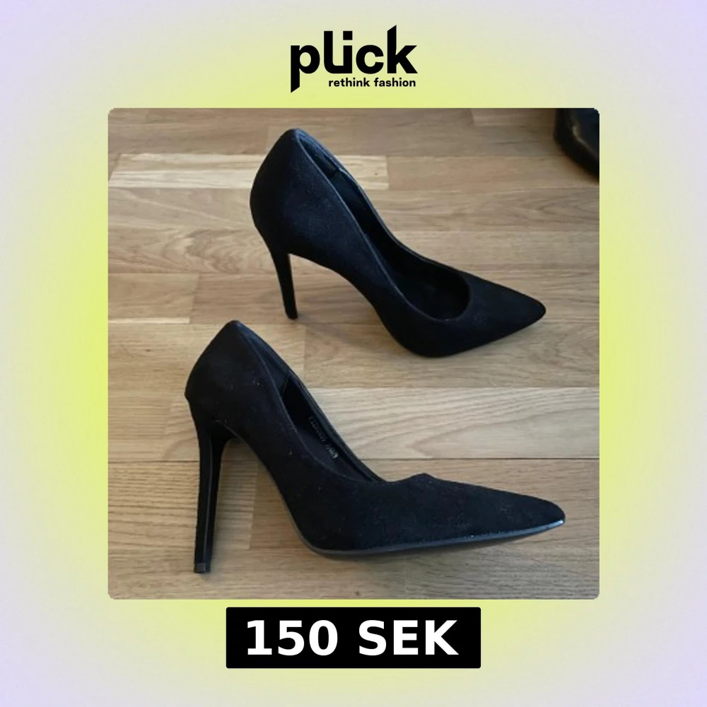 Stilrena svarta pumps med hög klack och spetsig tå. Skorna har en elegant siluett och är klädda i mocka för en lyxig känsla. Perfekta för att lyfta vilken outfit som helst.