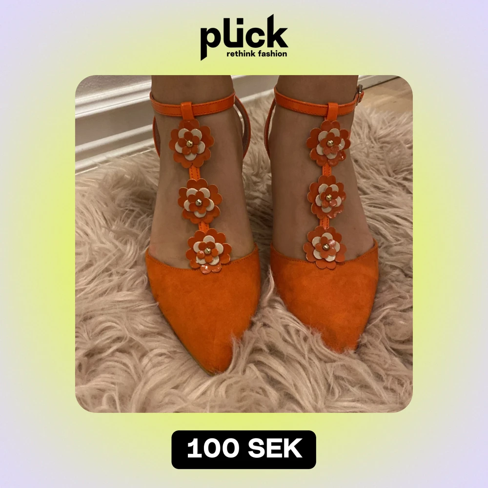 Orange klackskor med blommiga detaljer