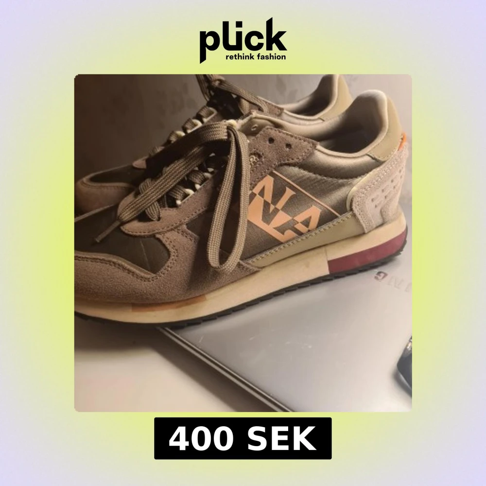 Snygga sneakers från Napapijri i beige och bruna toner med stora logodetaljer på sidan. Ovandelen är i mocka och syntet med coola kontraster och snörning. Skorna har en platt sula och rund tå, perfekt för en avslappnad streetstil.
