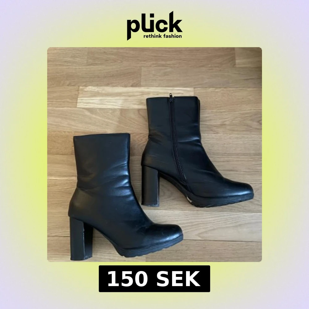 Stilrena svarta boots med hög klack och rund tå. Skorna har dragkedja på insidan och är tillverkade i ett slätt skinnliknande material. Perfekta för att lyfta din outfit med en edgy vibe.