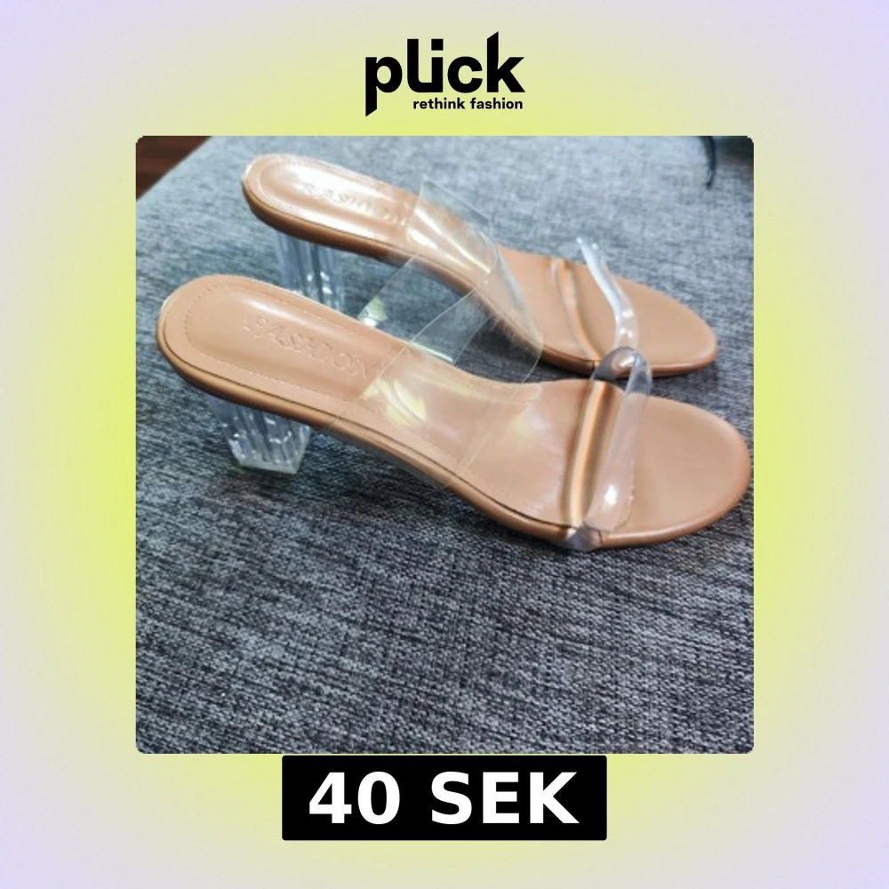 Snygga beiga sandaler med transparenta remmar och cool fyrkantig klack i plexi-look. Öppen tå och platt sula framtill, perfekt för dig som gillar trendiga och stilrena skor. Passar till många olika outfits och ger en modern vibe.