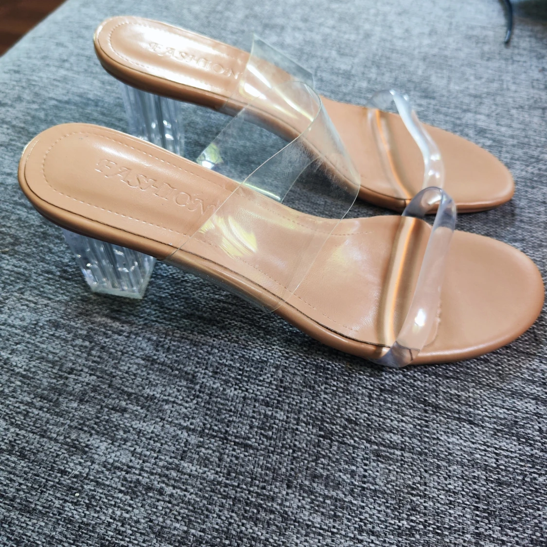 Beiga sandaler med transparent klack