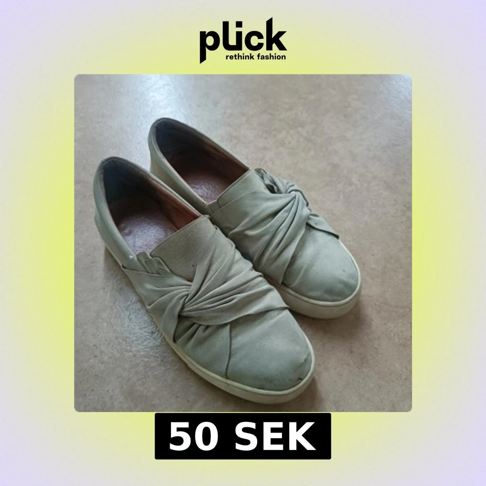 Snygga slip-on sneakers från Dasia i beige mockaliknande material. Skorna har en cool twistad detalj framtill och vit platt sula. Perfekta för dig som gillar en stilren men ändå unik look. Bekväm innersula och rund tå.