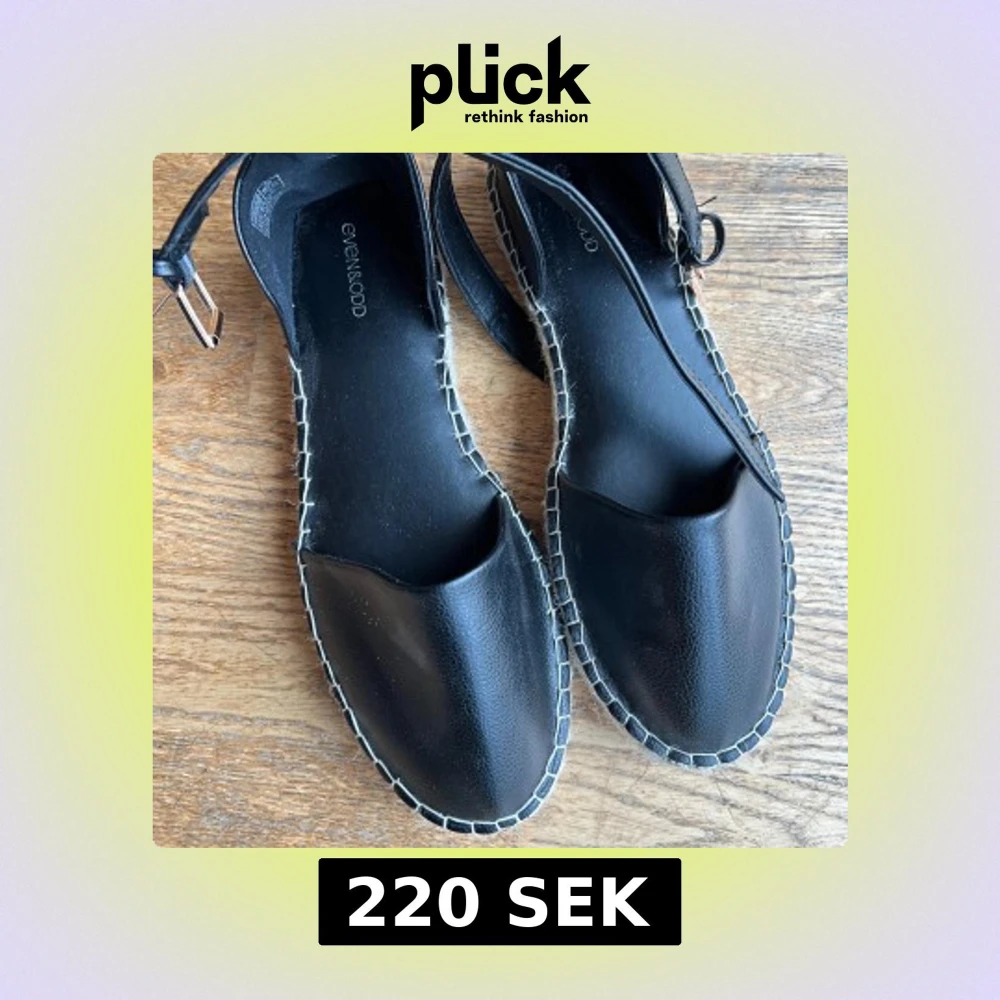 Snygga svarta sandaler från Even&Odd med dekorativa sömmar och justerbart spänne. Perfekta för sommarens alla äventyr. Endast testats en gång.