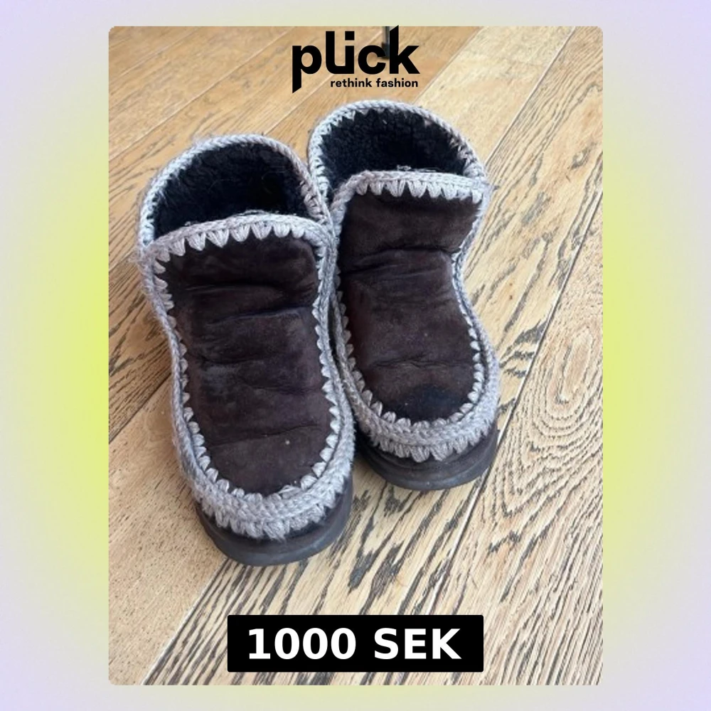 Mysiga bruna boots från Mou med grå stickade kanter och mjukt foder. Skorna är tillverkade i mocka och har en platt sula. Perfekta för kalla dagar och ger en avslappnad men ändå snygg look.