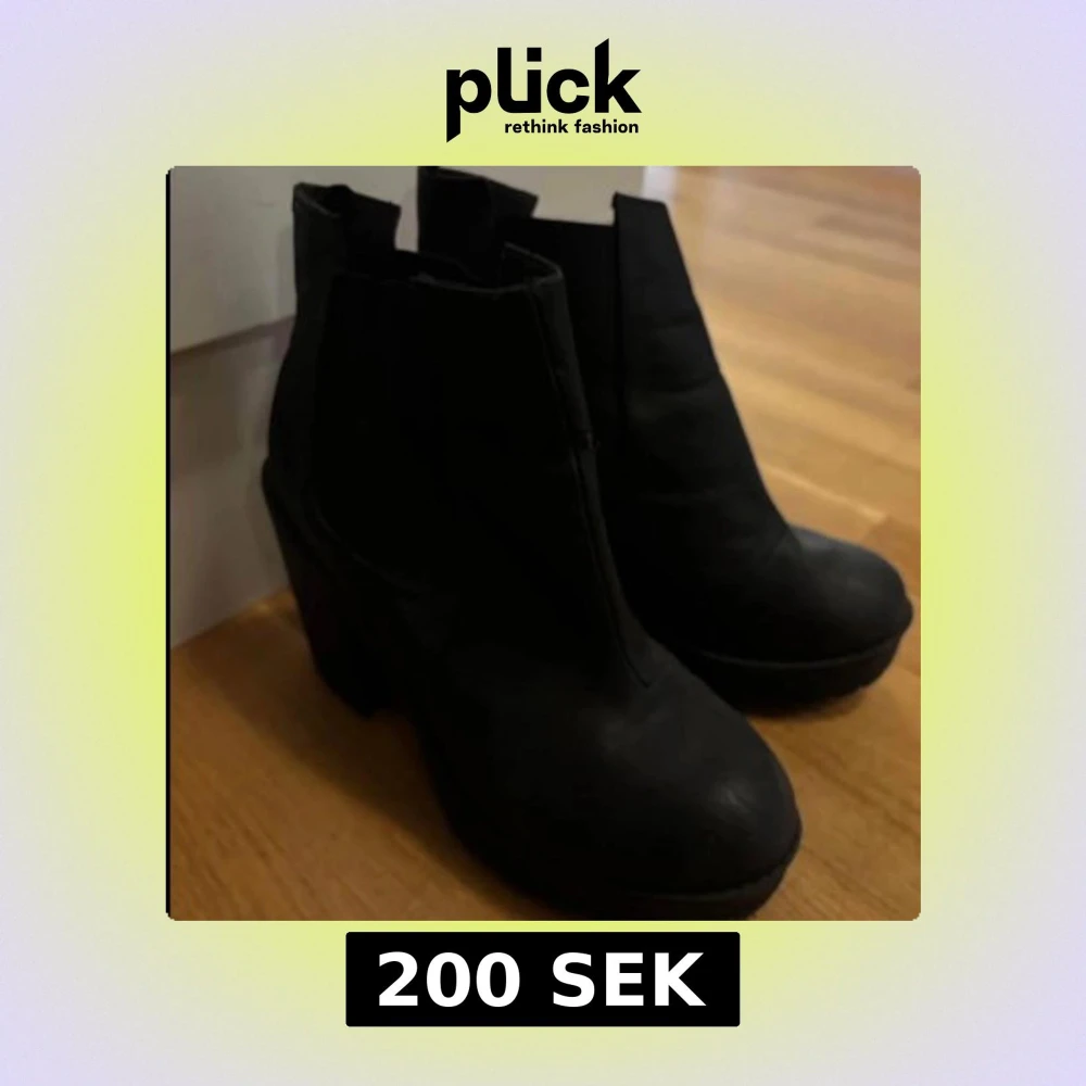 Snygga svarta boots med hög klack och platåsula. Skorna har rund tå och är tillverkade i ett material som liknar skinn. Perfekta för att lyfta din outfit med en stilren och edgy vibe.