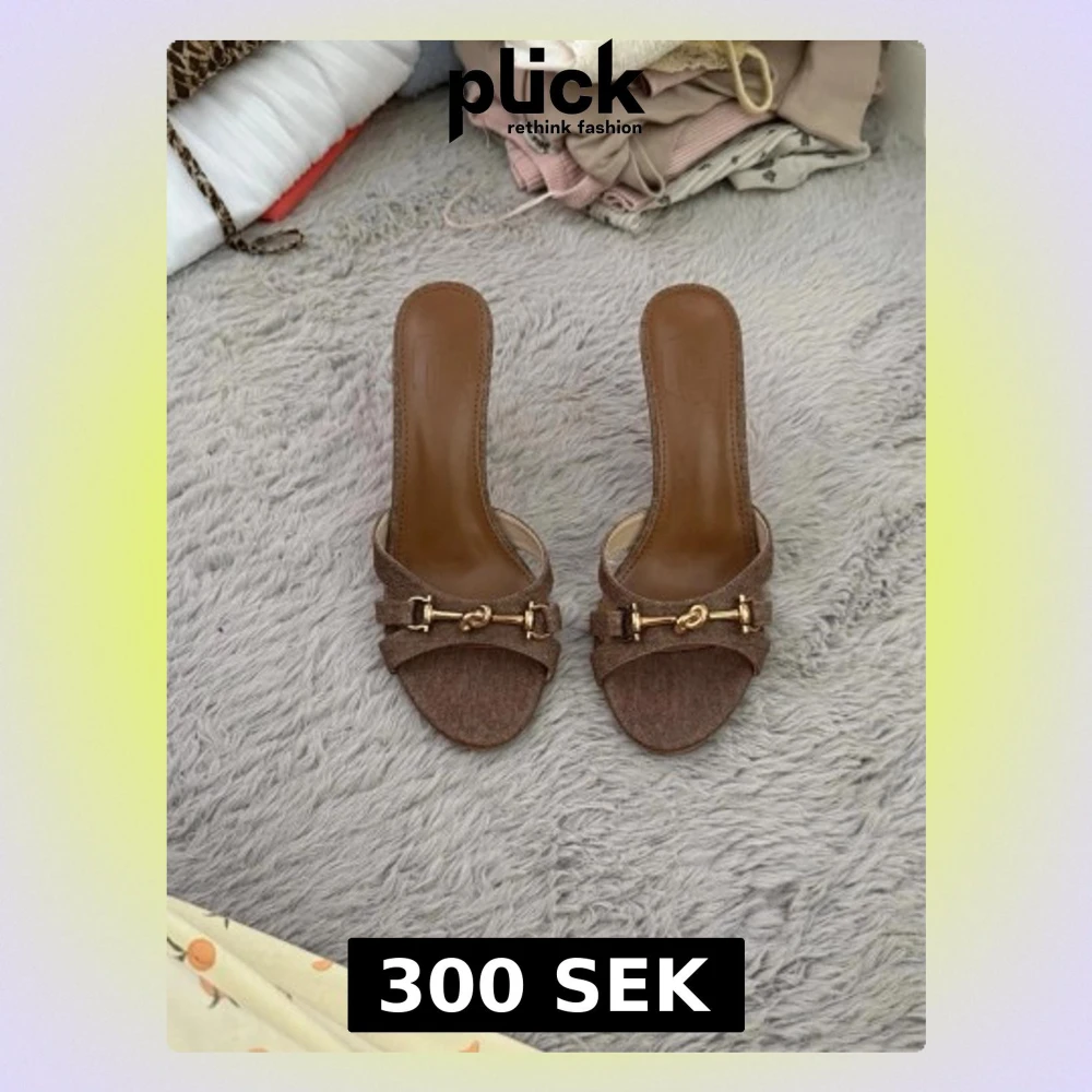 Jättefina helt oanvända bruna klackskor med en guld detalj! Jättefina och passar perfekt till ett par snygga jeans. De är i storlek 39 och är väldigt sköna!
