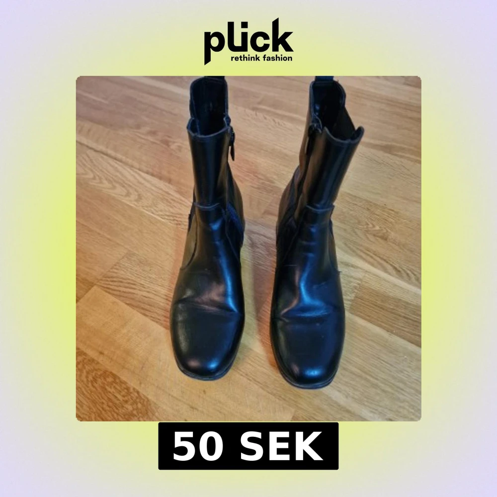 Snygga svarta chelsea boots i skinn med dragkedja på insidan och elastiska paneler på sidorna. Boots med fyrkantig tå och låg klack, perfekta för en stilren look. Klassisk design som funkar till många outfits.