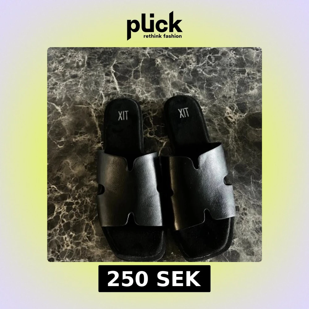 Snygga svarta sandaler från XIT med bred rem i skinnimitation och coolt utskuret mönster. Sandalerna har en fyrkantig tå och platt sula, perfekta för att glida runt i under varma dagar. Sandalerna är i storlek 39. Pris kan diskuteras