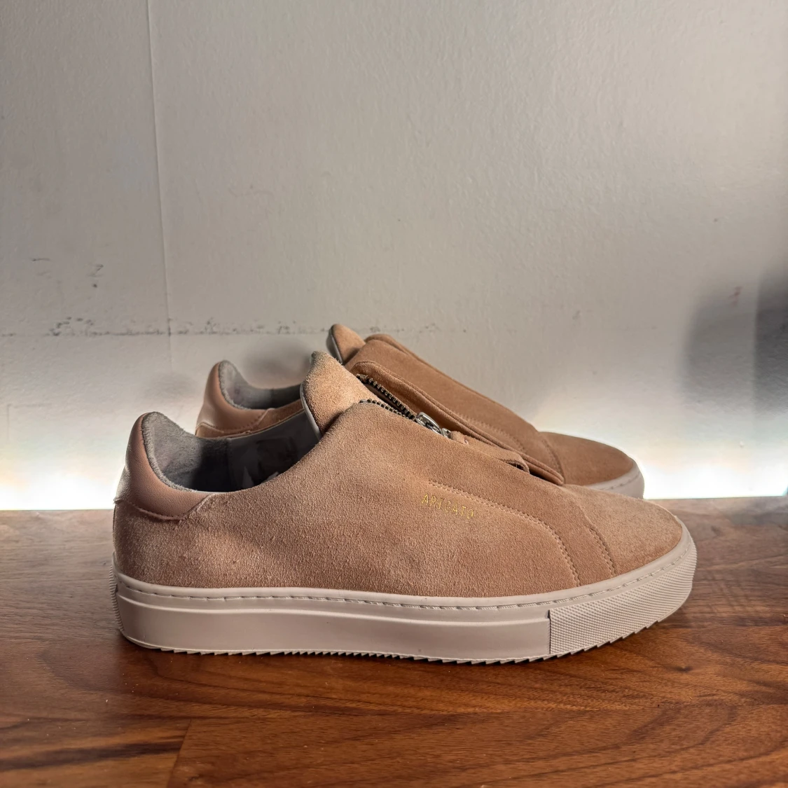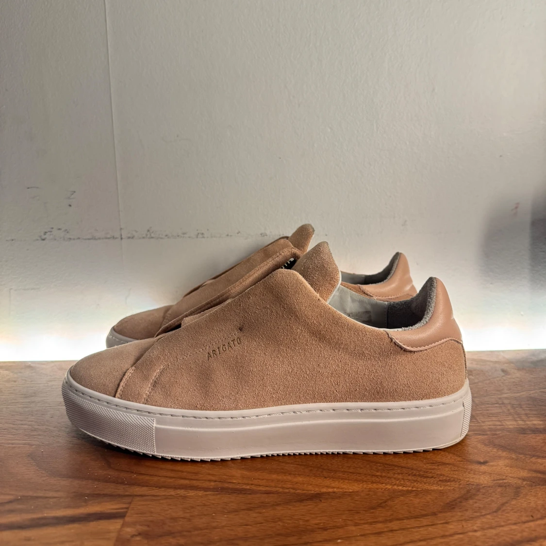 Säljer ett par Axel Arigato mocka sneakers i rosa mocka. Skorna är i fint skick och passar perfekt nu till sommaren/hösten