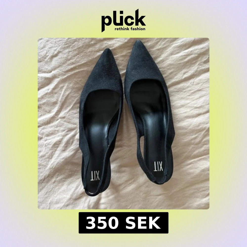 Snygga svarta pumps från XIT med spetsig tå och öppen häl. Skorna har en elegant låg klack och är tillverkade i mocka-liknande material. Perfekta för att lyfta din outfit med en stilren och modern touch. Aldrig använda