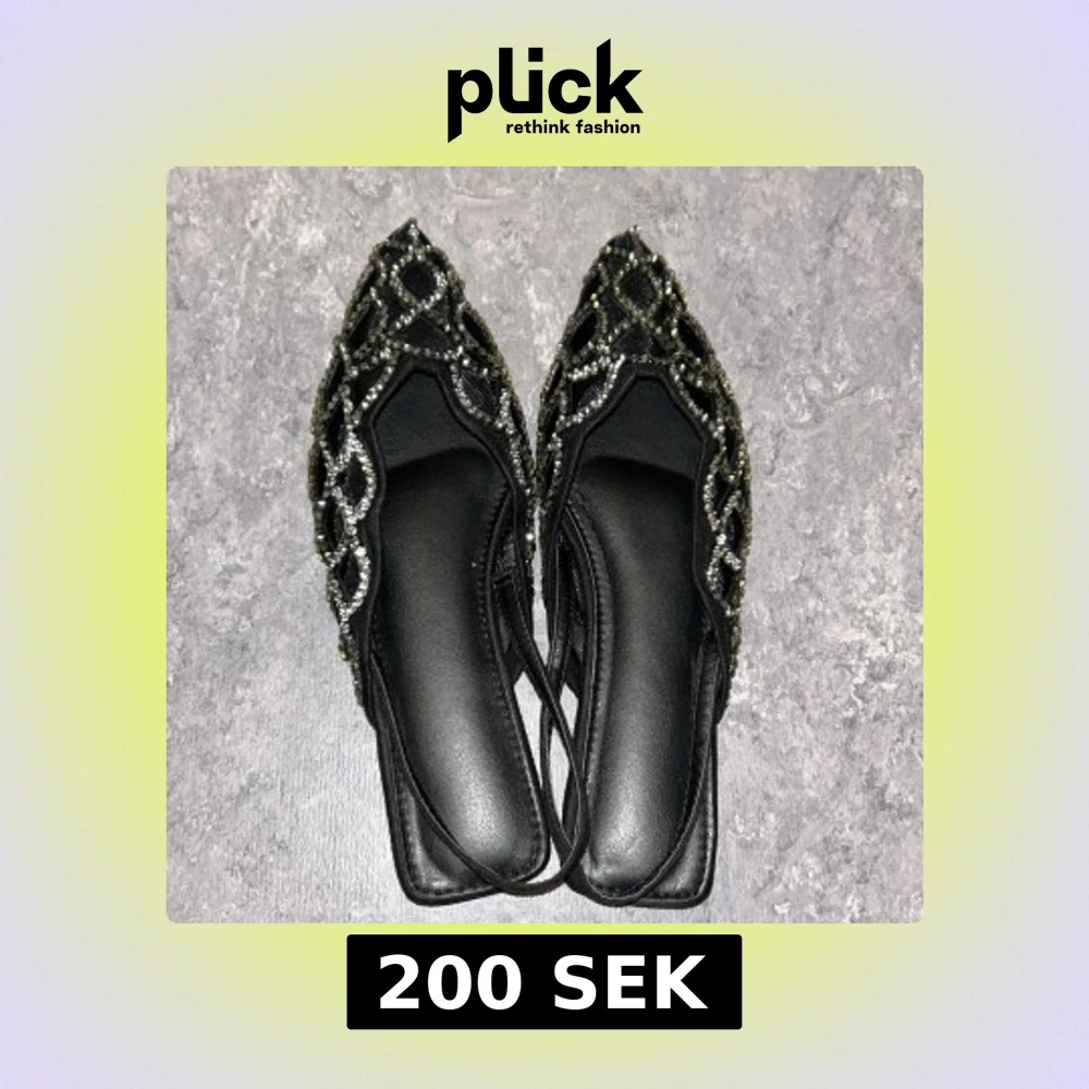Snygga svarta ballerinaskor med spetsig tå och glittriga pärldetaljer i silver och guld. Skorna har ett nätliknande mönster och platt sula, vilket ger en cool och elegant vibe. Perfekta för dig som gillar att sticka ut med dina skor.