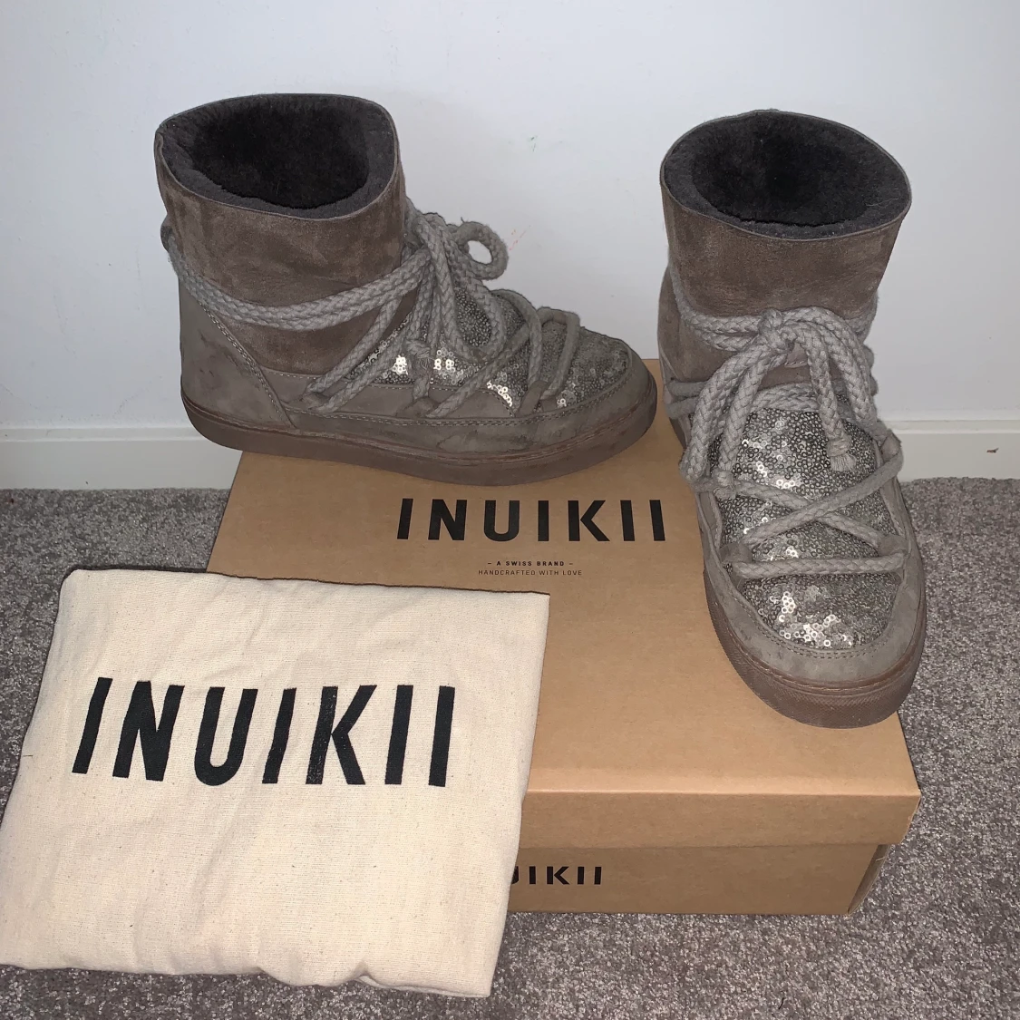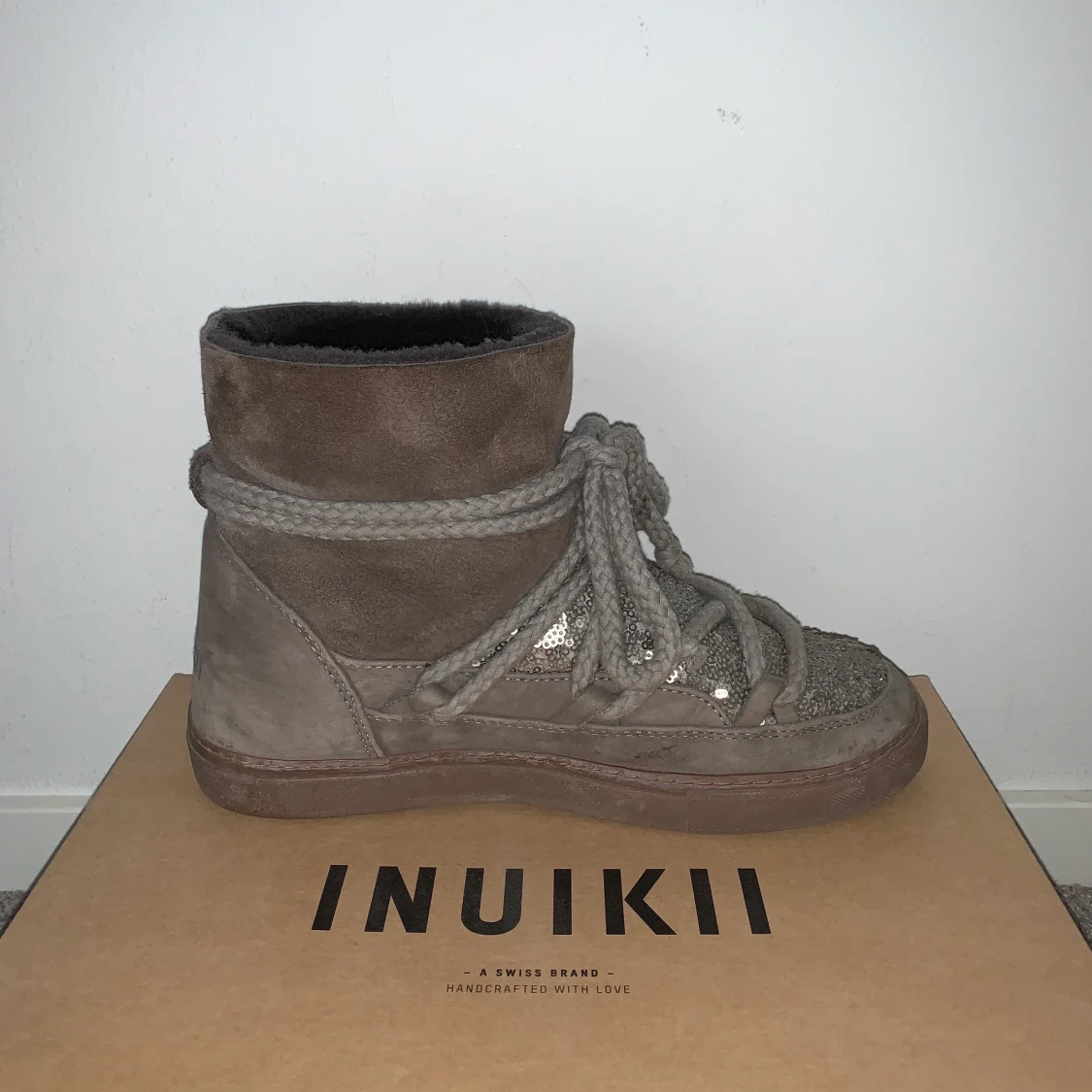 Grå-bruna Inuikii skor med silver paljetter i storlek 39. Köpta för ungefär ett år sedan och är i väldigt bra skick! Du får med skokartong och dustbag!