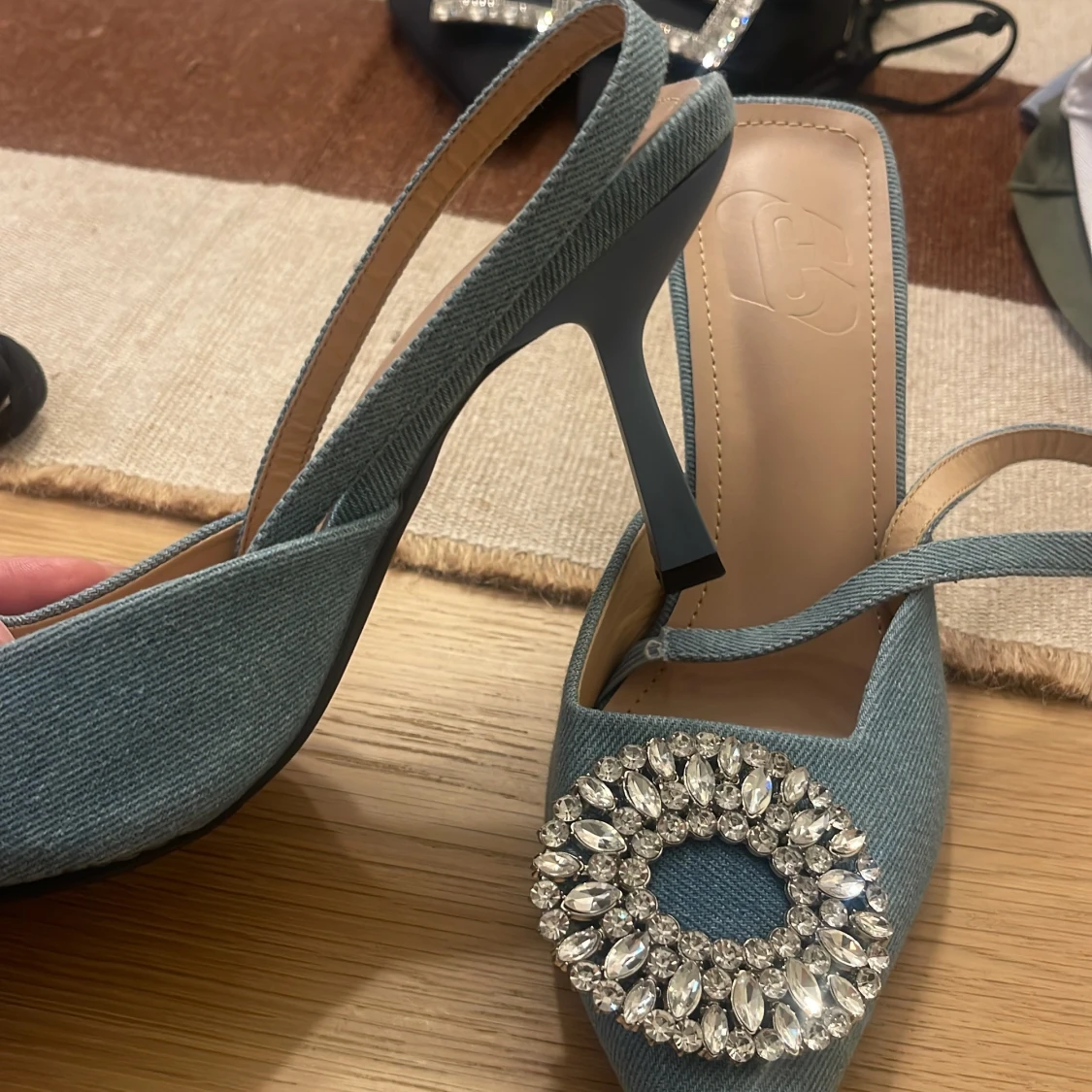 Blå pumps med strassdetalj
