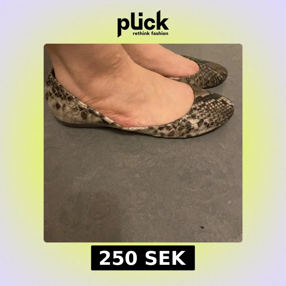 Säljer ett par ballerinaskor från Claudia Ghizzani med ormskinnsmönster i beige, brunt De är även i ÄKTA SKIN och svart. Skorna har rund tå och platt sula,. De är i storlek 39 jätte sköna !