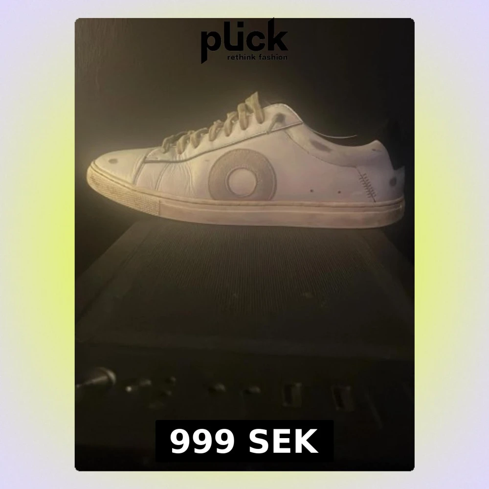Säljer ett par vita sneakers från Oliver Cabell i storlek 39. Skorna har ett unikt cirkelmönster på sidorna. Tillverkade i skinn och levereras med originalkartong och dustbag. Perfekt för dig som gillar stilrena och coola detaljer. Gjorda i Italien och nypris 3050kr!