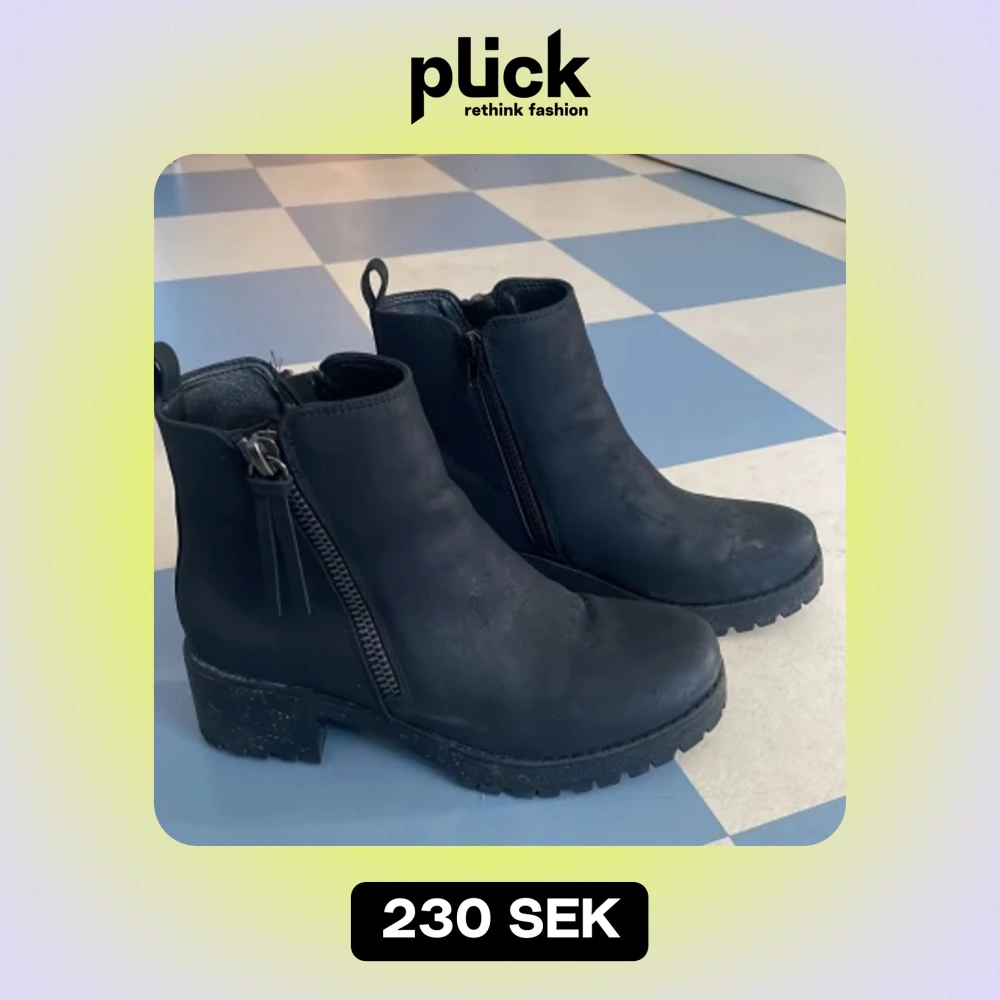Säljer ett par svarta boots med dragkedja på sidan. De har en robust sula och en liten klack, perfekt för höst och vinter. Bootsens stilrena design gör dem lätta att matcha med olika outfits. Sköna, inte stiva.