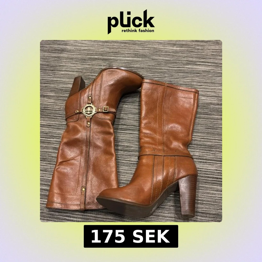 Bruna skinnstövlar med klack
