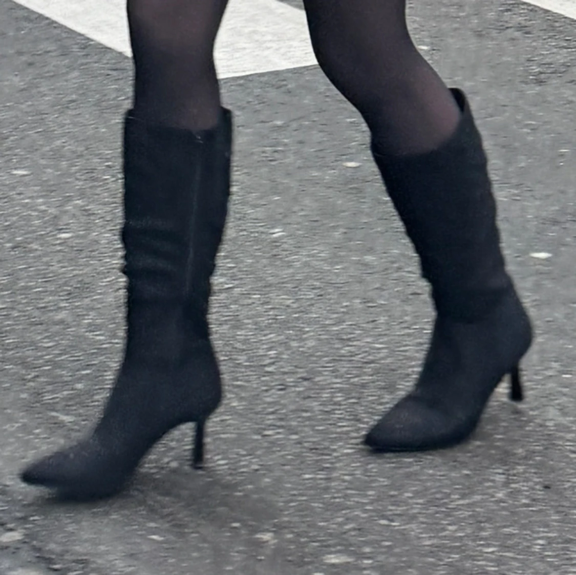 Snygga svarta stövletter med klack och spetsig tå. Perfekta för en elegant look och passar bra till både kjol och byxor.