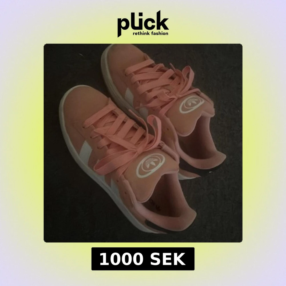 Säljer ett par rosa campus 00s med vita detaljer och klassiska ränder på sidorna. Skorna har snörning och en beige sula med gummiyta undertill. Perfekta för dig som gillar sportig och stilren look. Använda 2 gånger.