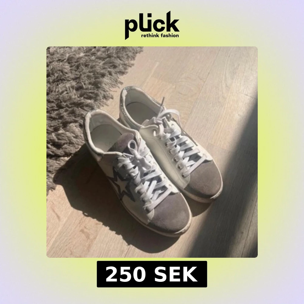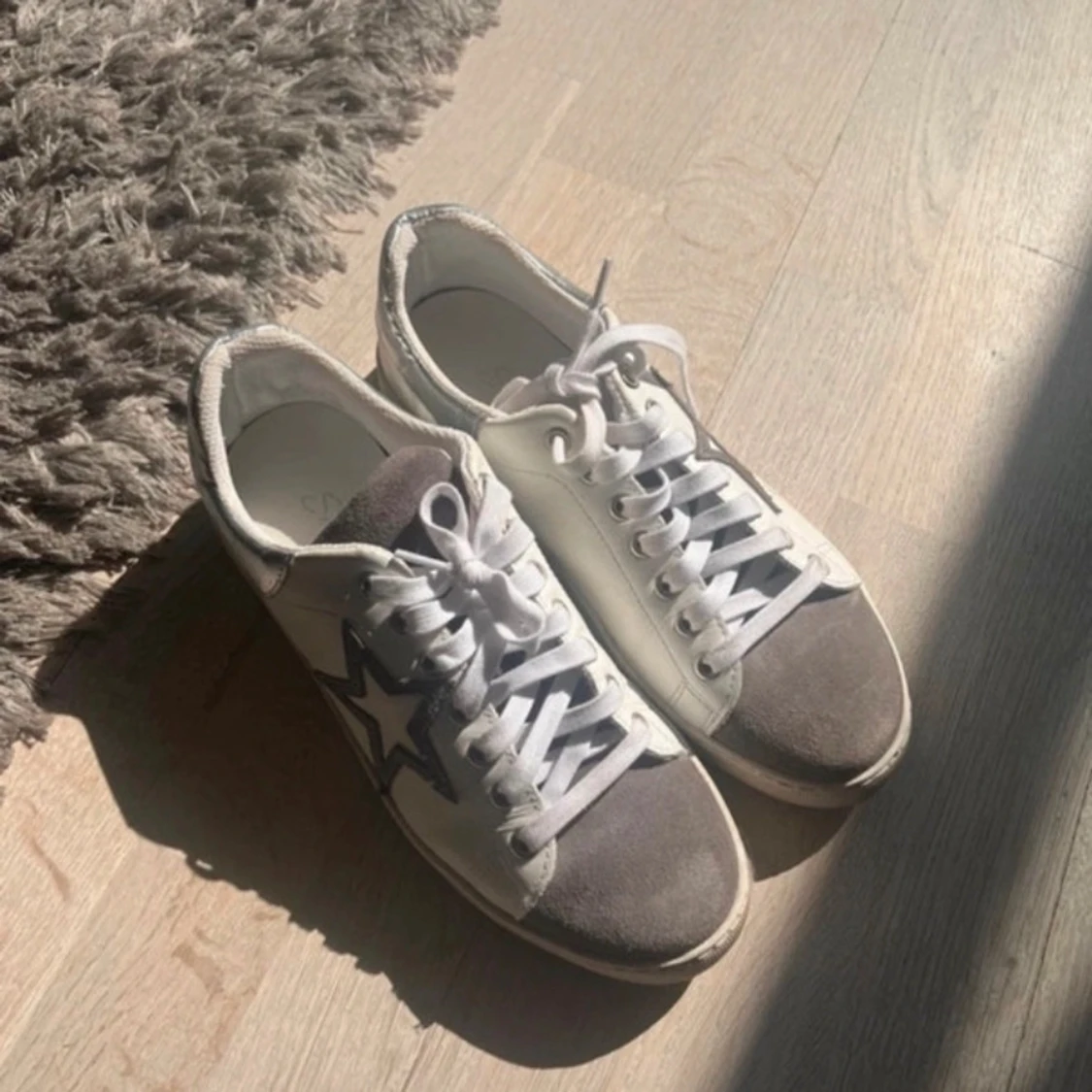 Snygga sneakers i grått och vitt med stjärndetalj på sidan. Skorna har snörning och en bekväm passform, perfekta för en avslappnad stil⭐️