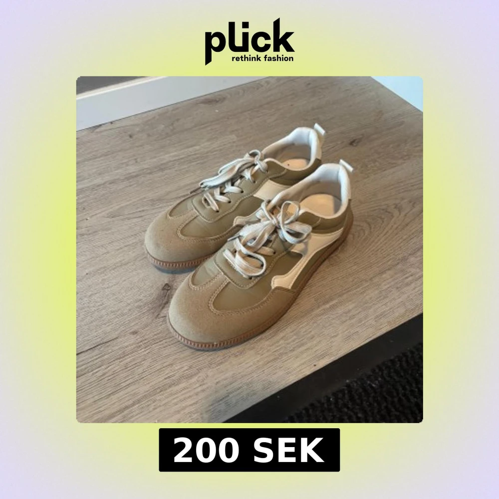 Beige och olivgröna sneakers med vita detaljer