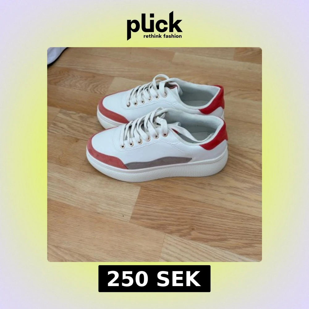 Snygga vita sneakers med röda och grå detaljer. Skorna har snörning och en bekväm sula som passar perfekt för vardagsbruk. De har en modern design med en kontrasterande färgkombination som ger en stilren look.