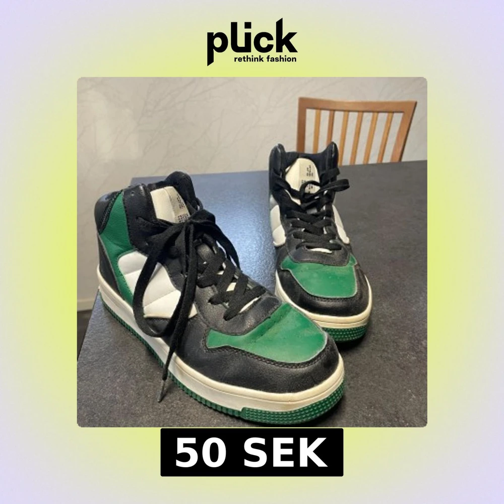 Snygga sneakers i svart, vitt och grönt med snörning. Perfekta för en cool och avslappnad stil.