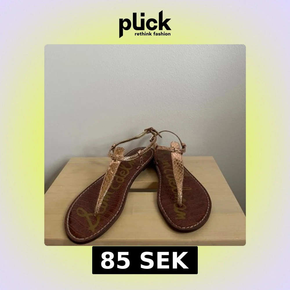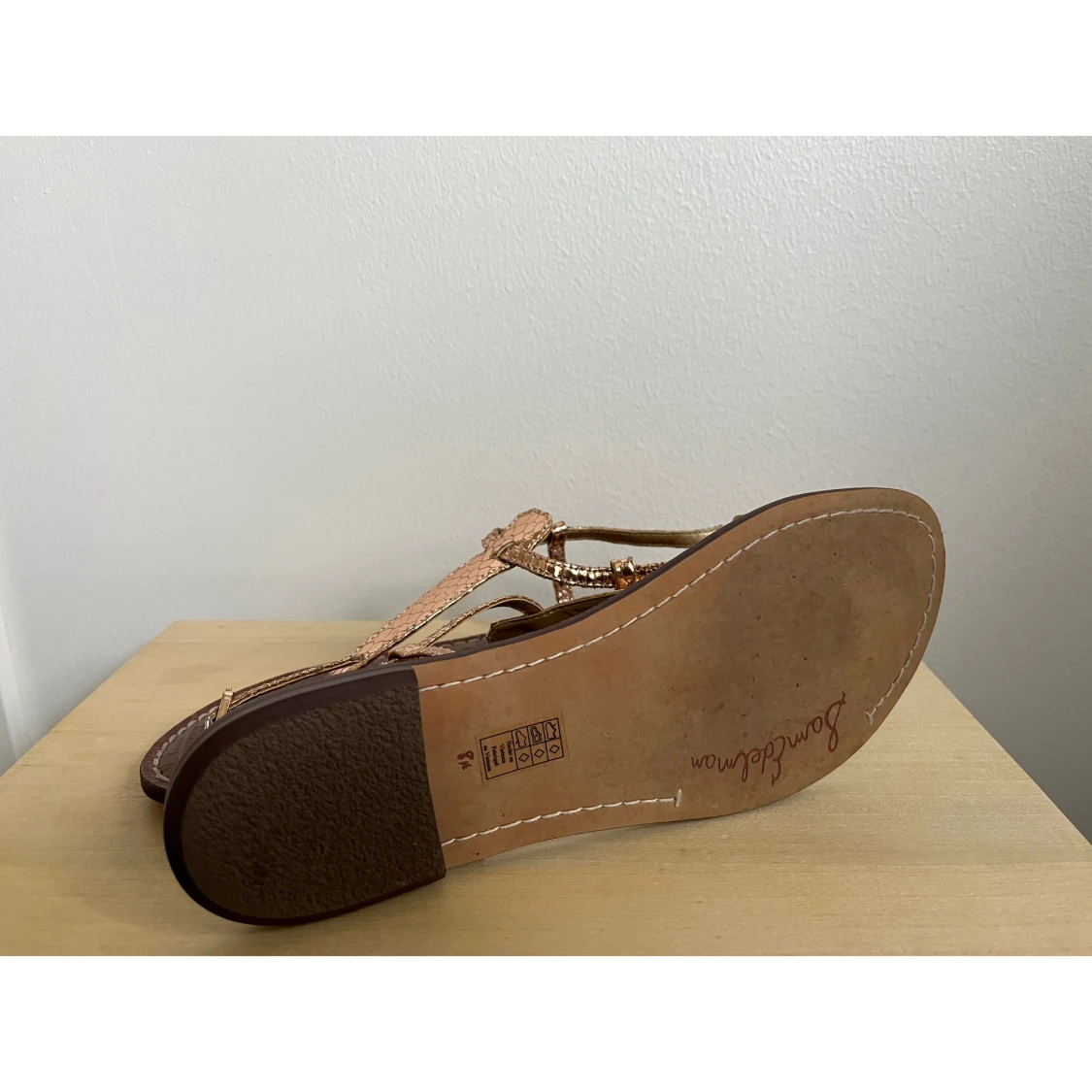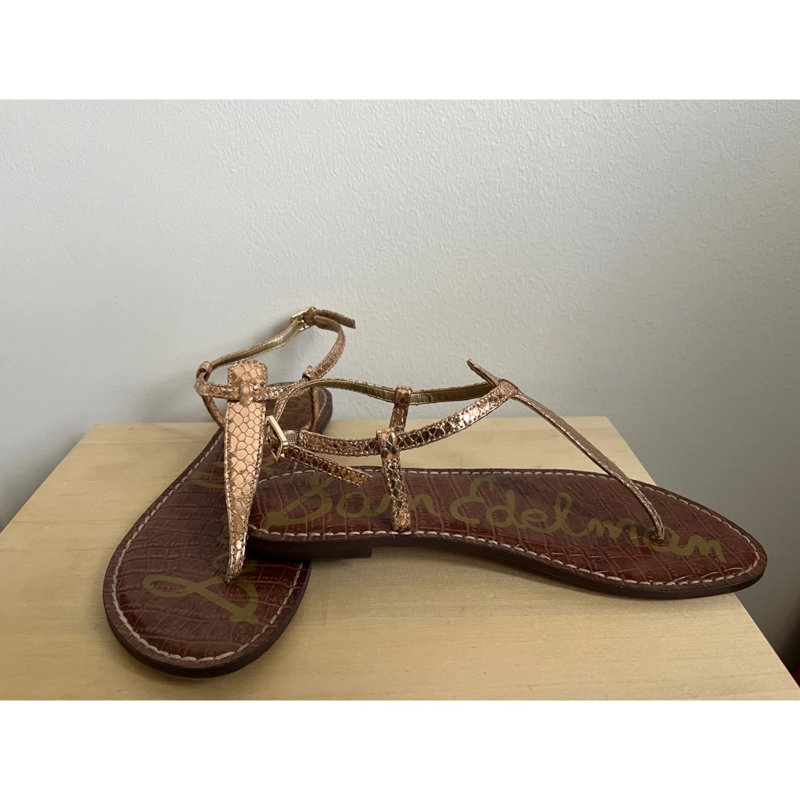 Snygga sandaler från Sam Edelman i roséguldigt syntetmaterial med reptilmönster. De har tunna remmar, platt sula och öppen tå.