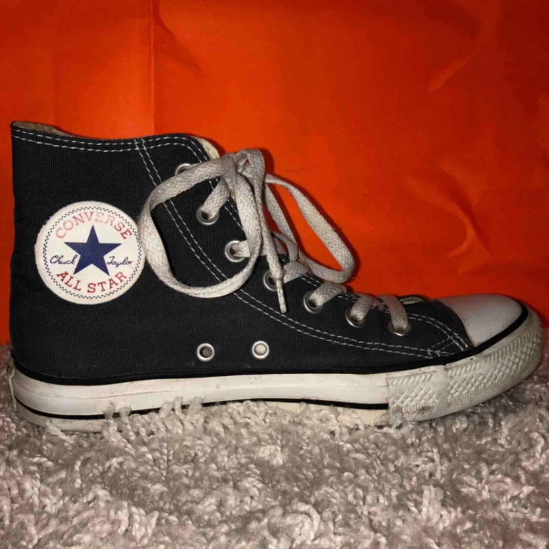Jättefina Blåa höga Converse! Köpta för 800kr säljer för 110kr i storlek 39. Kan mötas upp i Stockholm annars står köpare för frakt☺️