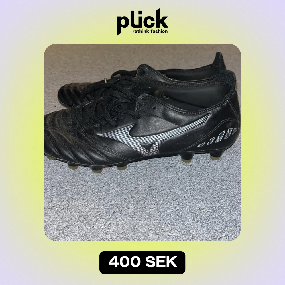 Säljer ett par svarta fotbollsskor från Morelia Neo i bra skick. Skorna har snörning och är tillverkade i skinn för bästa komfort och hållbarhet. Perfekta för fotbollsträning och matcher. Sulan har flera dobbar för bra grepp på planen.