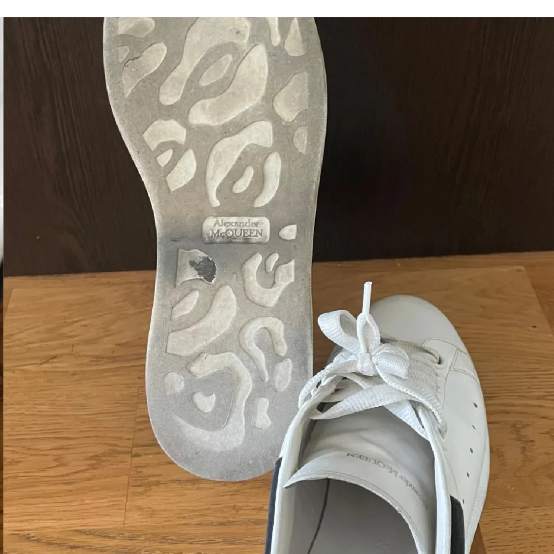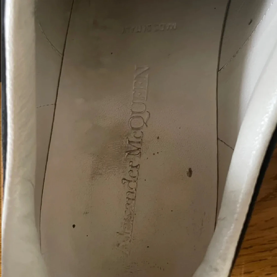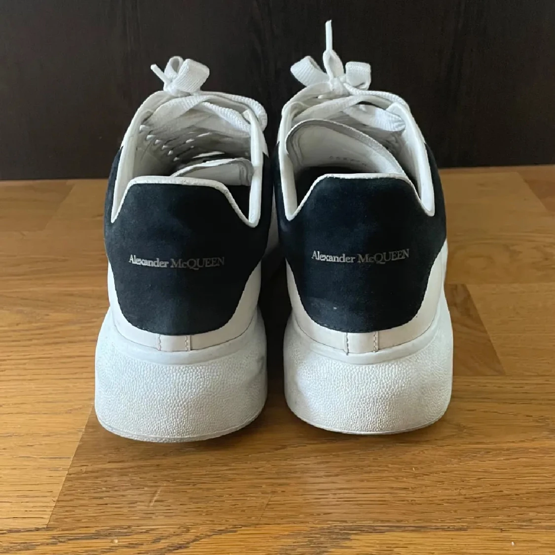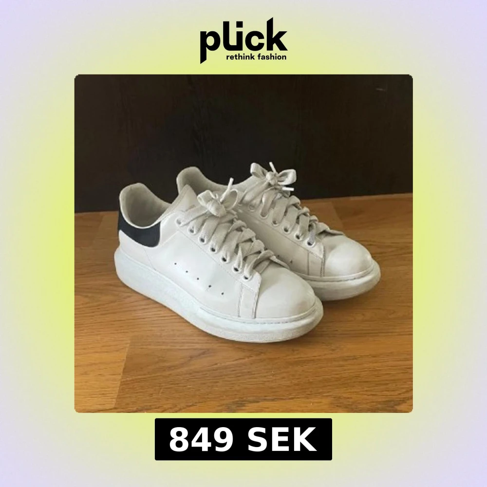 Stilrena vita sneakers från Alexander McQueen med svart hälparti och tjock sula. Skorna har rund tå, snörning och är tillverkade i skinn. Perfekta för dig som gillar en clean och modern look med exklusiv känsla.