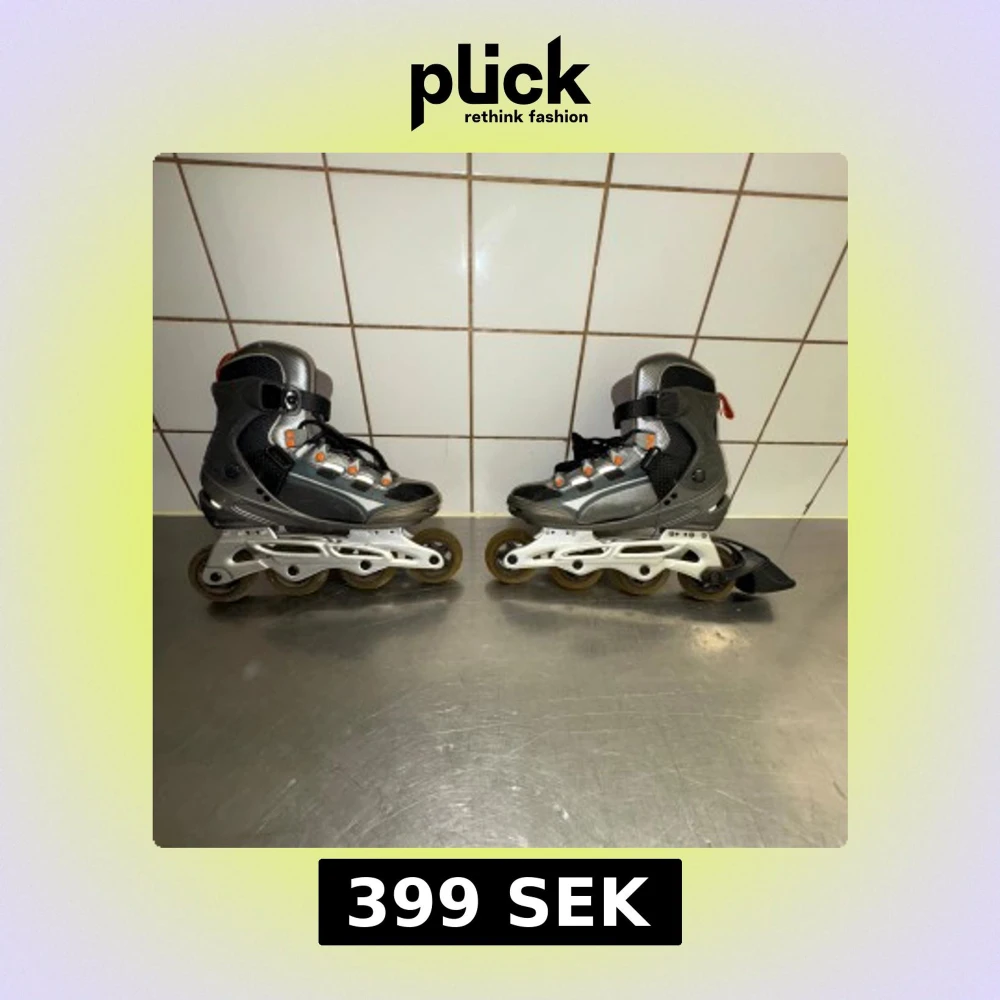 Säljer ett par grå och svarta inlines från Revolution Pro Speed XT. De har orange detaljer och snörning för bra passform. Perfekta för en tur i parken eller längs strandpromenaden.