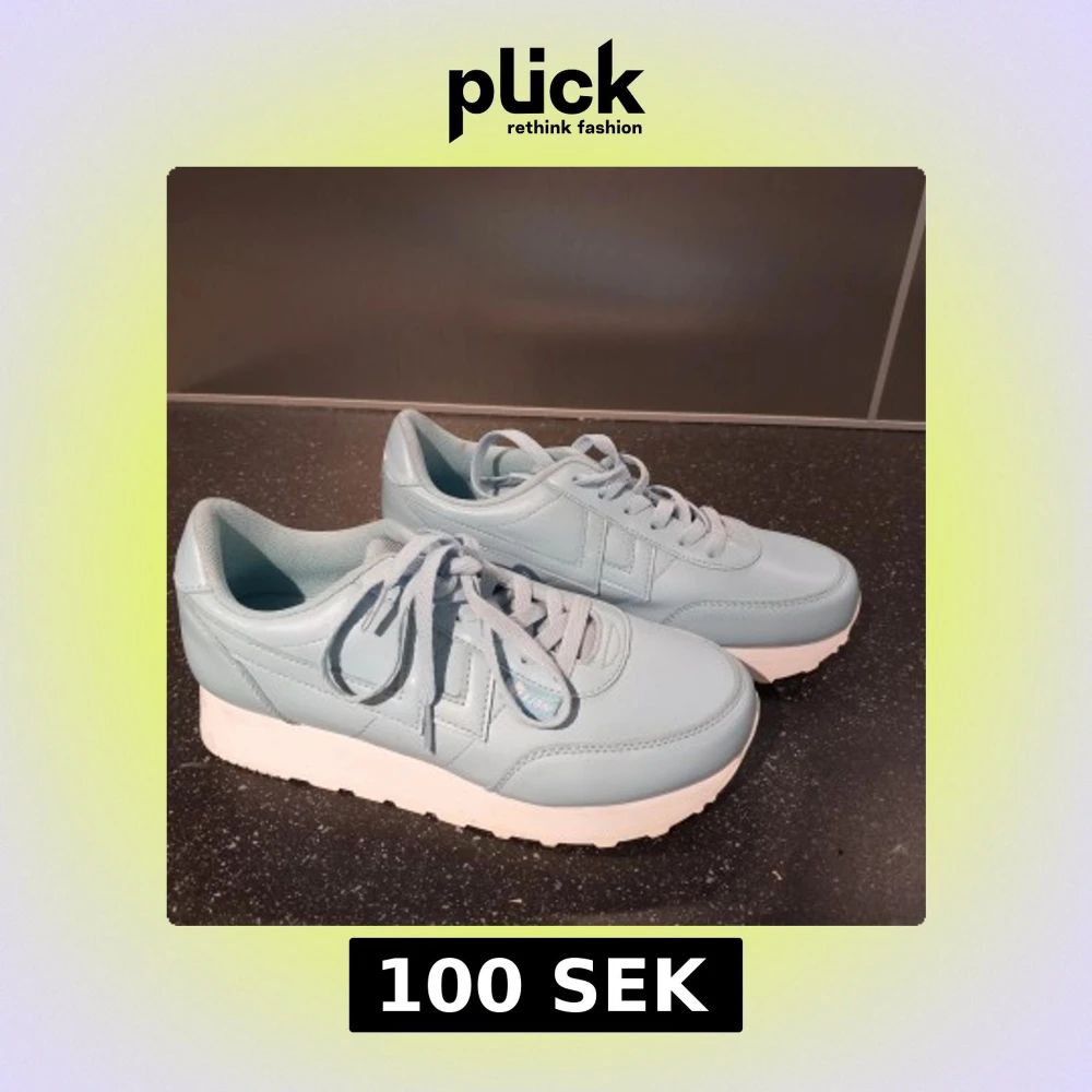 Snygga ljusblå sneakers med vit hög sula och klassisk snörning. Helt oanvända.