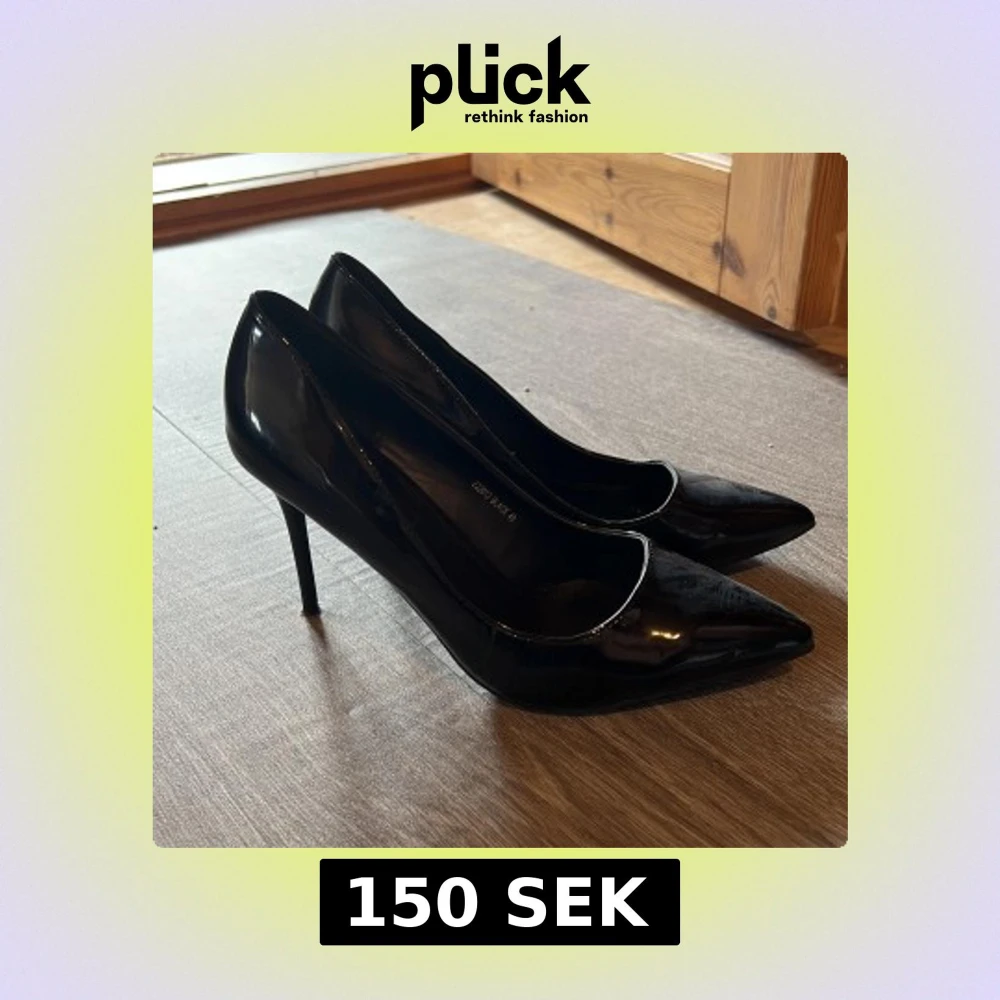 Klassiska svarta pumps i glansigt lackmaterial från Jumex. Skorna har spetsig tå och smal hög klack som ger en elegant siluett. Perfekta för dig som vill ha en stilren och tidlös look med lite edge.